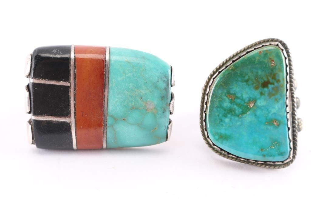 (1) Turquoise Navajo Ring set in sterling size 8