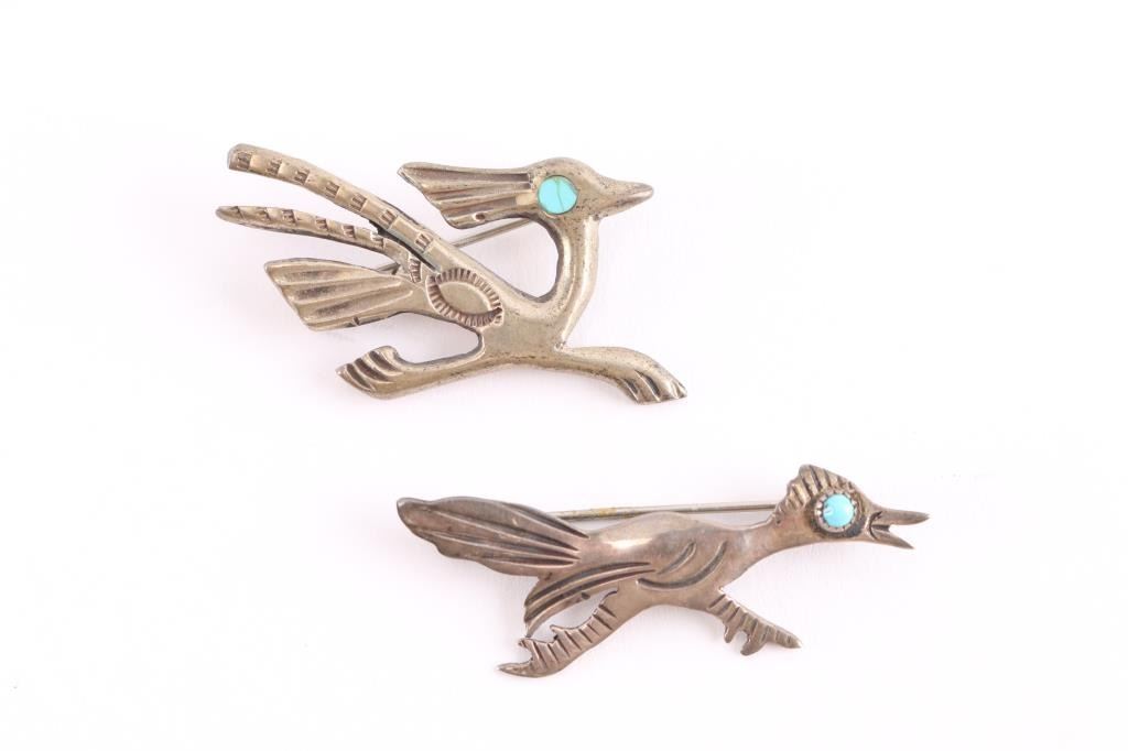 Lot 938 2 Hopi Sterling Roadrunner Pins.