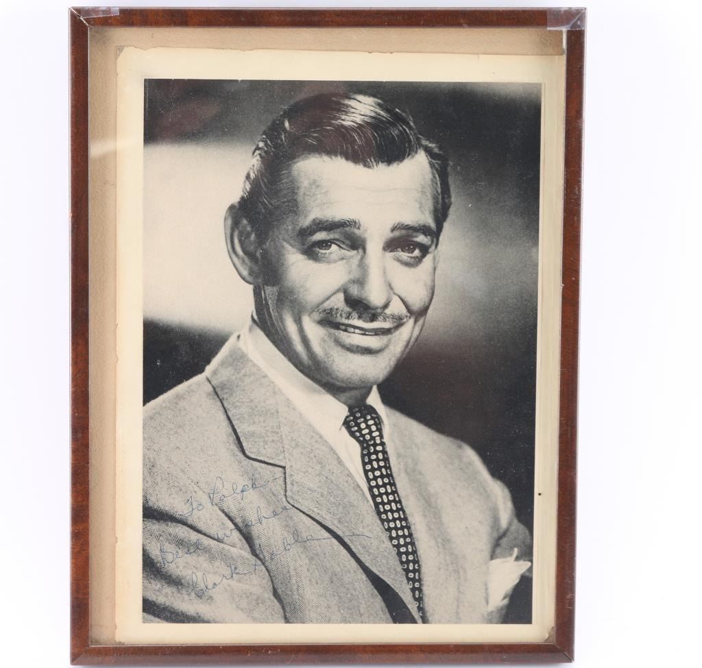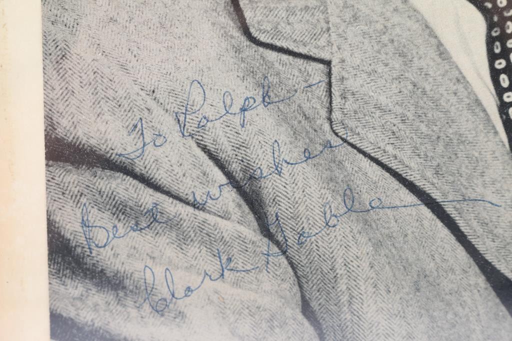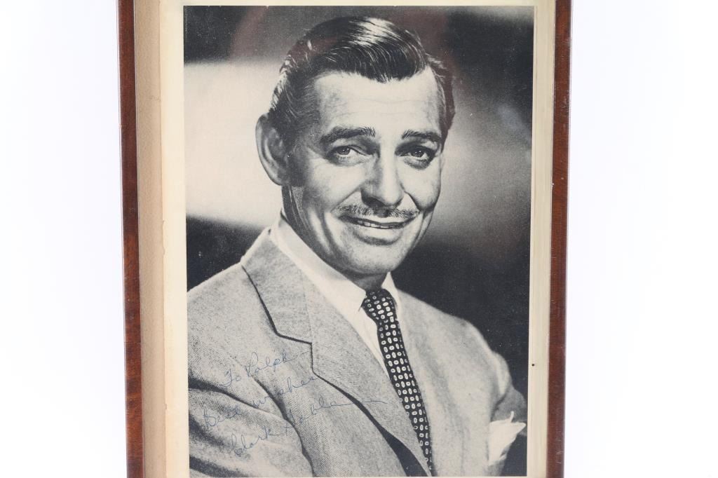 Signature reads: "To Ralph - Best wishes Clark Gable". Photograph measures 12" x 9", in period brown wood frame measures13" x 10".