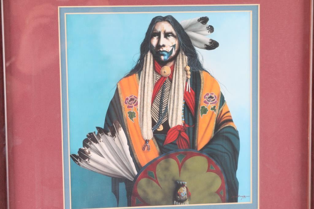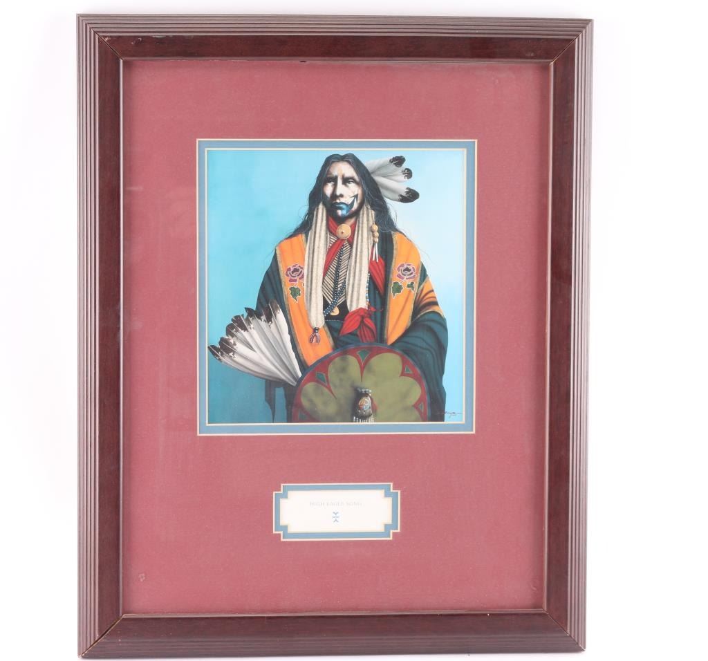 Entitled High Eagle Song, dated 1997. Print measures 8" x 8 1/2", double matted, framed measures 16 1/2" x 20 1/2".