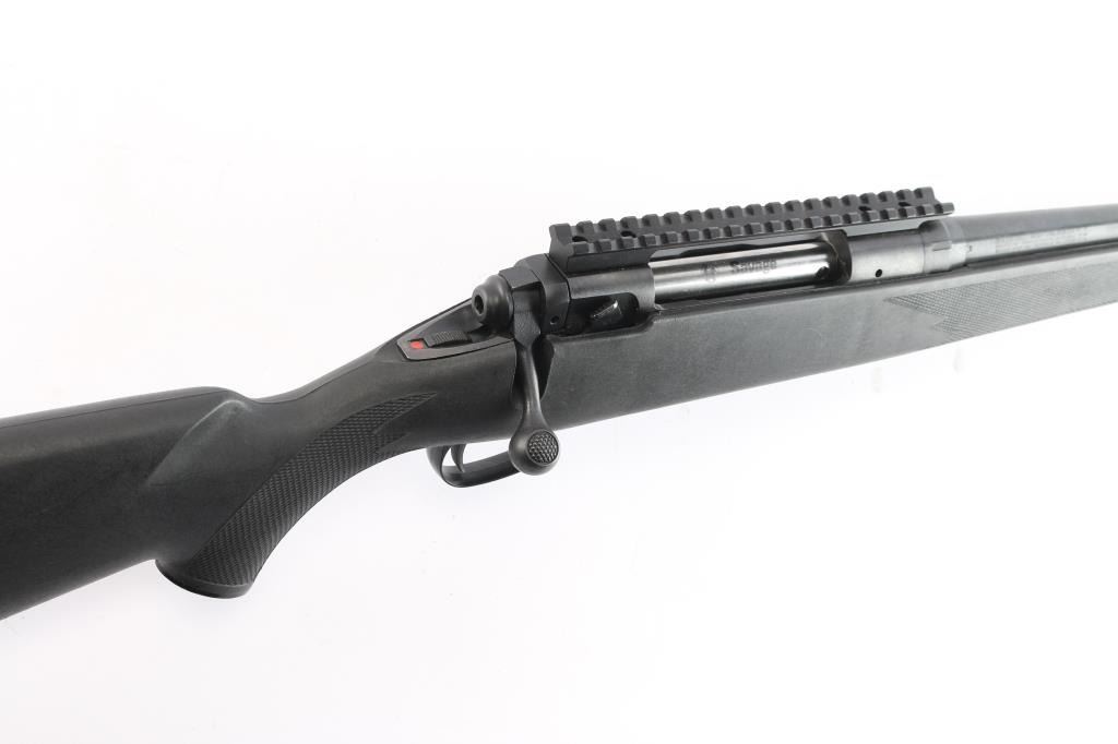 Bolt-action sporting rifle chambered in .270 Winchester. Features a blued finish, 22" tapered barrel without provisions for sights, EGW 0 MOA optics rail installed on the receiver, smooth curved trigger with beveled edges, sliding tang safety, polymer trigger guard, partially checkered bolt handle, blind internal magazine, and point checkered black synthetic semi-pistol grip shoulder stock with swivel studs, rubber recoil pad & 13 ¼” LOP. Rifle retains approximately 95% of its original blued finish showing scratches and minor surface rust. Action is smooth, the bore is excellent and the stock has some scratches and marring. Condition is NRA good++. ***Modern Firearm***