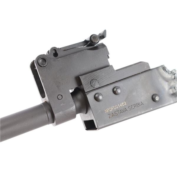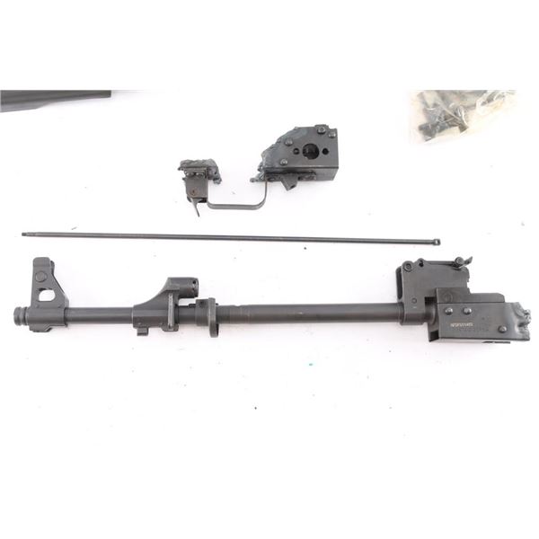 Zastava M70 Stamped under Folder 7.62x39. Kit has populated barrel in excellent condition, all metal parts and wood handguards in very good condition. Torch cut receiver section with rear trunnion, trigger guard and release button.