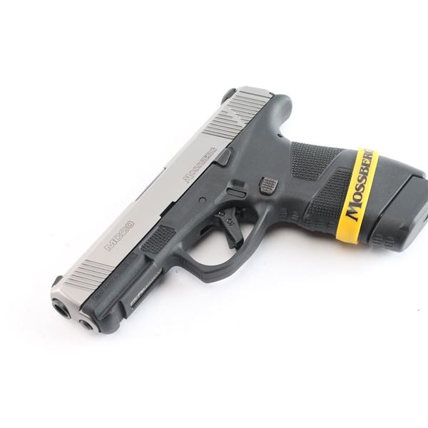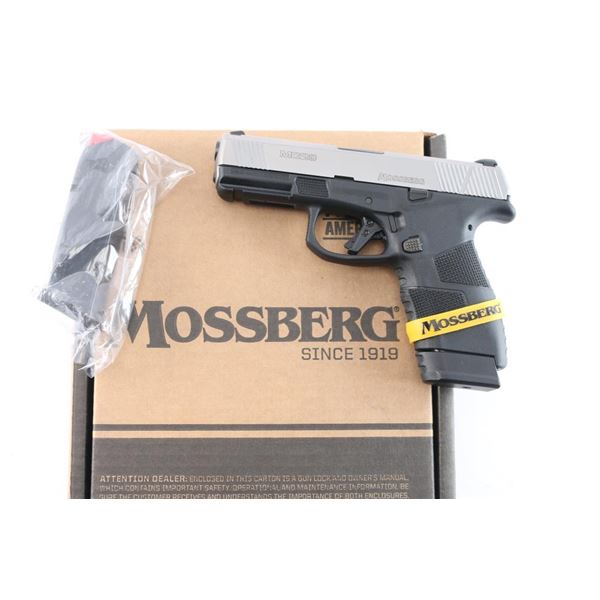 American made, semi-automatic striker-fired compact pistol, approximately 4" barrel, stainless steel slide with forward and aft serrations, serrated and checkered black polymer frame w/accessory rail, 3 white dot sights in dovetails, integral safety trigger, unique push button safety behind trigger, push button mag release and slide stop. Bore is Pristine. No visible loss to finish. Comes with two magazines, one 16rd and one 13rd, manual, cable lock and factory box. Condition is near NRA Perfect. ***Modern Firearm***.