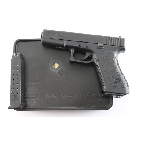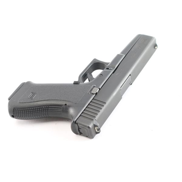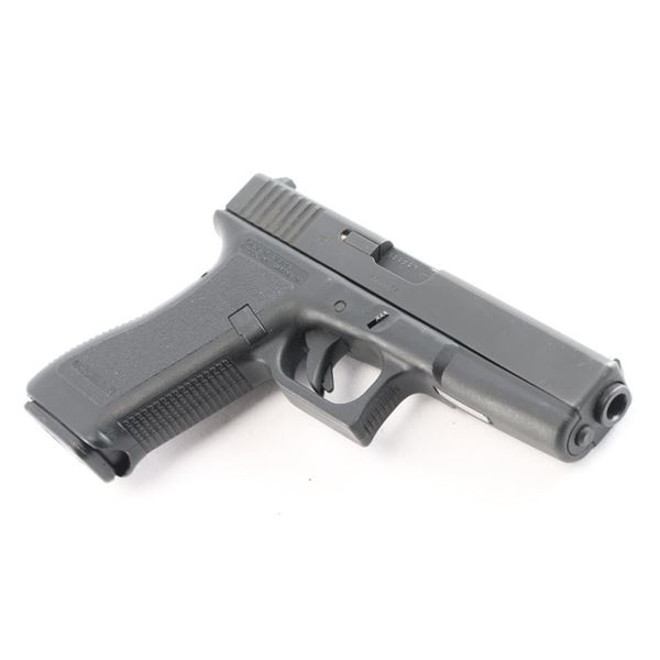 Austrian made safe-action semi-automatic full-size pistol chambered in 9x19mm. Features a matte black finish, 4.5" barrel, factory sights, trigger safety, push button magazine release and durable black polymer frame with integral textured grip. The barrel, slide & frame show matching serial numbers. Includes a black factory 'Tupperware' plastic case with two 17rd magazines and manual. Pistol exhibits approximately 95% showing light edge wear on the barrel and slide. Action is crisp, bore is excellent/bright. Condition is NRA very good. ***Modern Firearm.***