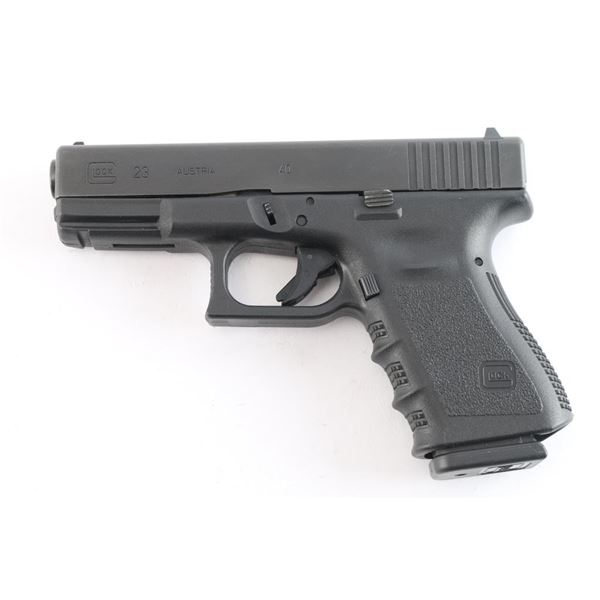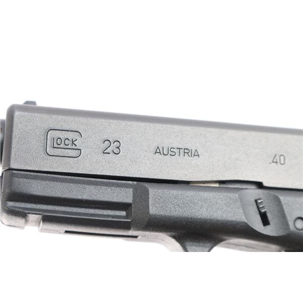 Austrian made safe-action semi-automatic compact pistol chambered in .40 Smith & Wesson. Features a black finished slide, 4" barrel, full-length guide rod, white dot front sight, dovetailed rear sight with white outlined square notch, trigger safety, push button magazine release, durable black polymer frame with accessory rail, checkered finger grooves, grip straps & integral textured grip panels. Bore is good/needs cleaning. Retains approx. 98% finish with little wear. Includes one 13rd factory magazine. Condition is NRA Excellent.***Modern Firearm***.