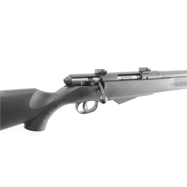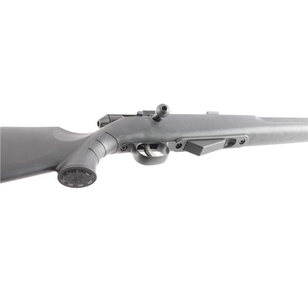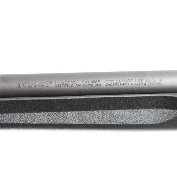 'Walking Varminter' American made bolt-action sporting rifle chambered for .17 Hornet ammunition. Features a matte black finish, 22" barrel w/ a recessed crown, no sights, two-piece weaver scope base installed. Polymer one piece stock w/textured pistol grip, forend and vented soft rubber recoil pad, polymer trigger guard, polymer 4 round detachable box magazine and AccuTrigger. Safety lever top right of receiver, jeweled bolt and sling swivel studs. Bore is pristine. Retains approx. 98% finish with minor wear. Condition is NRA Excellent. ***Modern Firearm***.