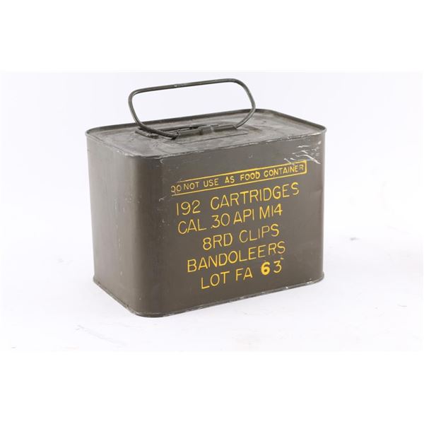 Unopened USGI "Spam Can" of 192 AP M2 .30-06 cartridges in 8 rd clips/Bandoleers.