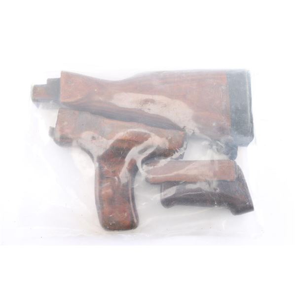 Romanian PM MD63 Surplus Wood Kit. Surplus Romanian PM MD63 AKM This wood kit will fit standard spec AKM rifles that are on the Warsaw Pact pattern. Stock has the black stripe for the 'G" series MD63. Complete, very good condition.