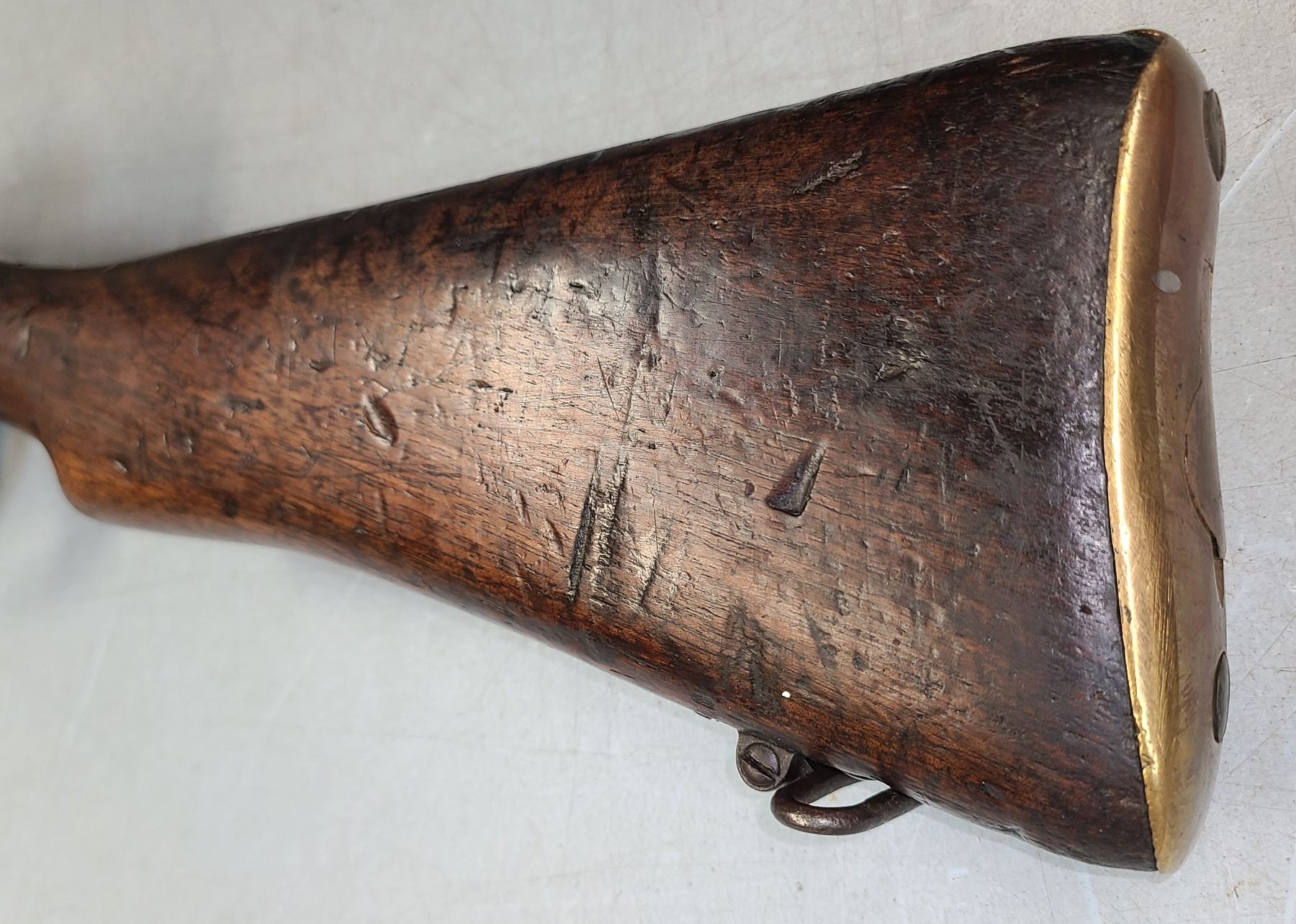and forend, straight grip shoulder stock with brass disc and brass trapdoor buttplate