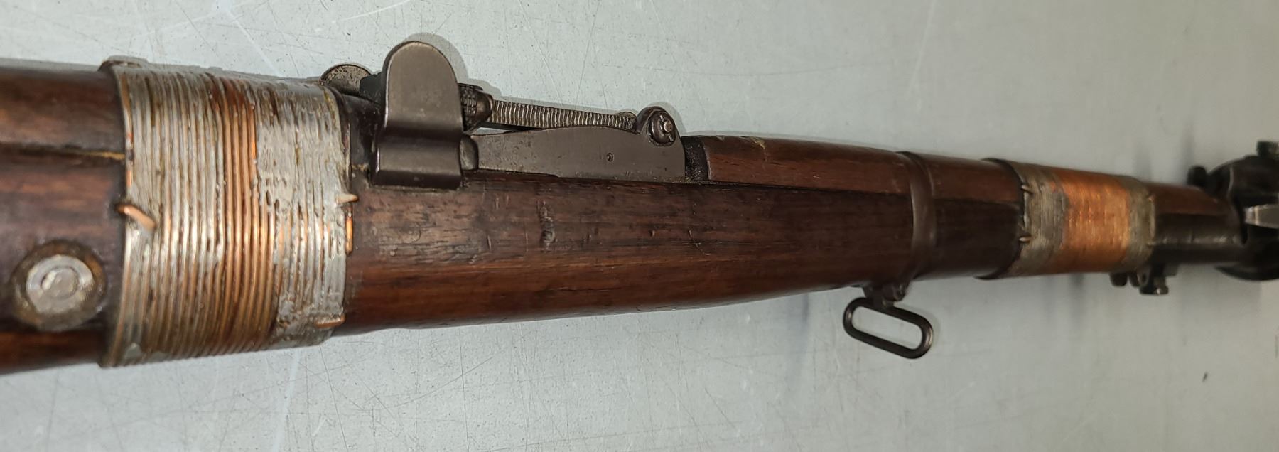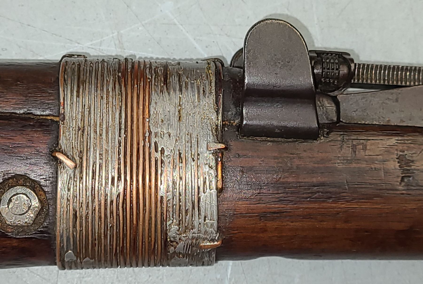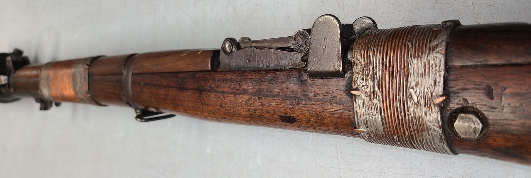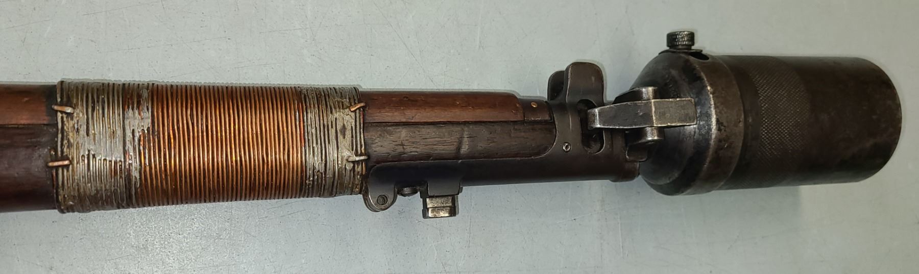 receiver, charge loading bridge on the receiver, copper wire wrapped full length hand guard