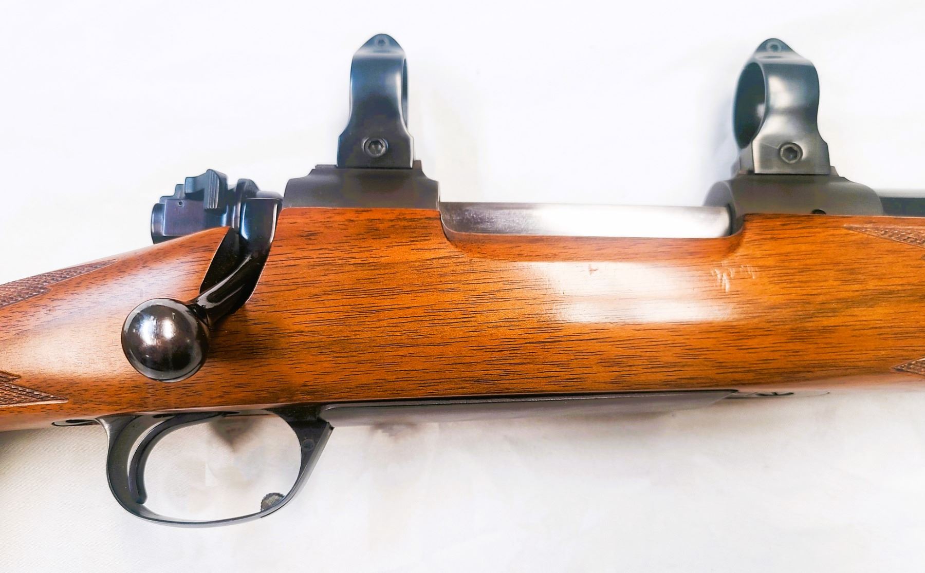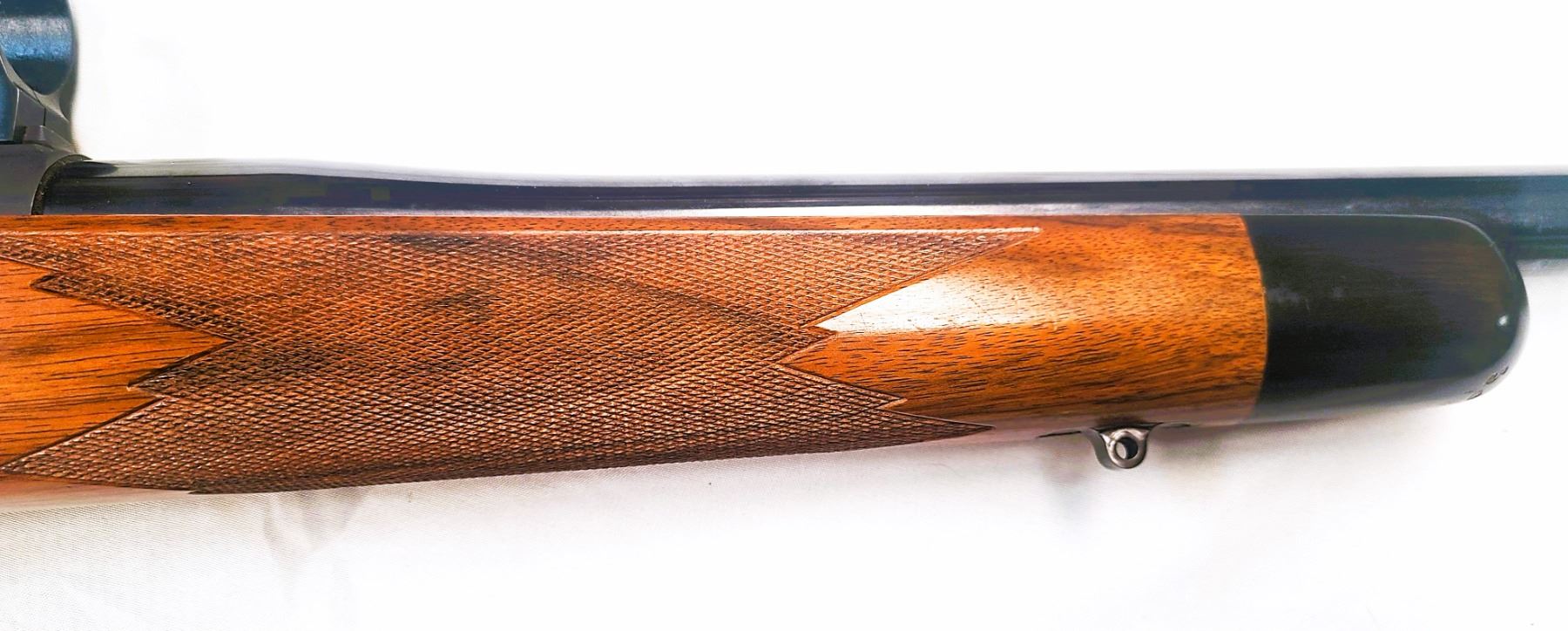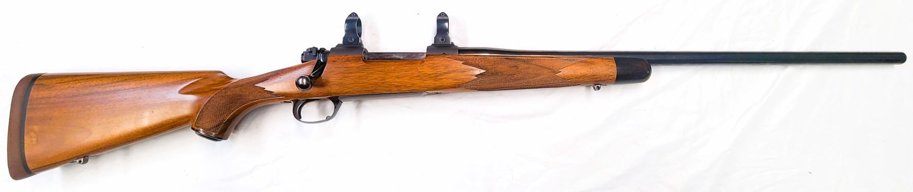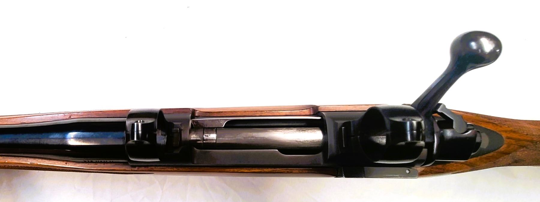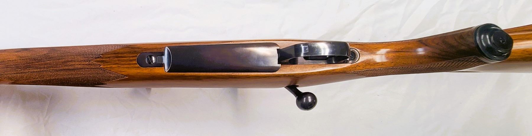 Mauser-style bolt stop; 22 in Featherweight chrome-moly barrel with 6 grooves and