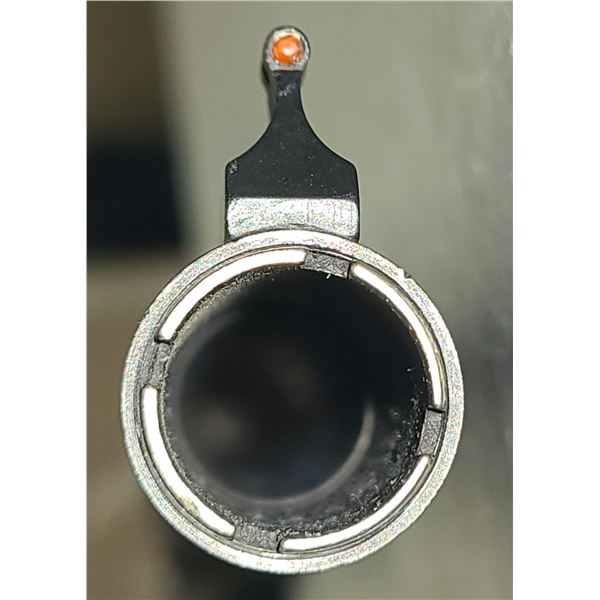 Barrel is smooth bore 20 inch long with adjustable rear sight and fibre optic front