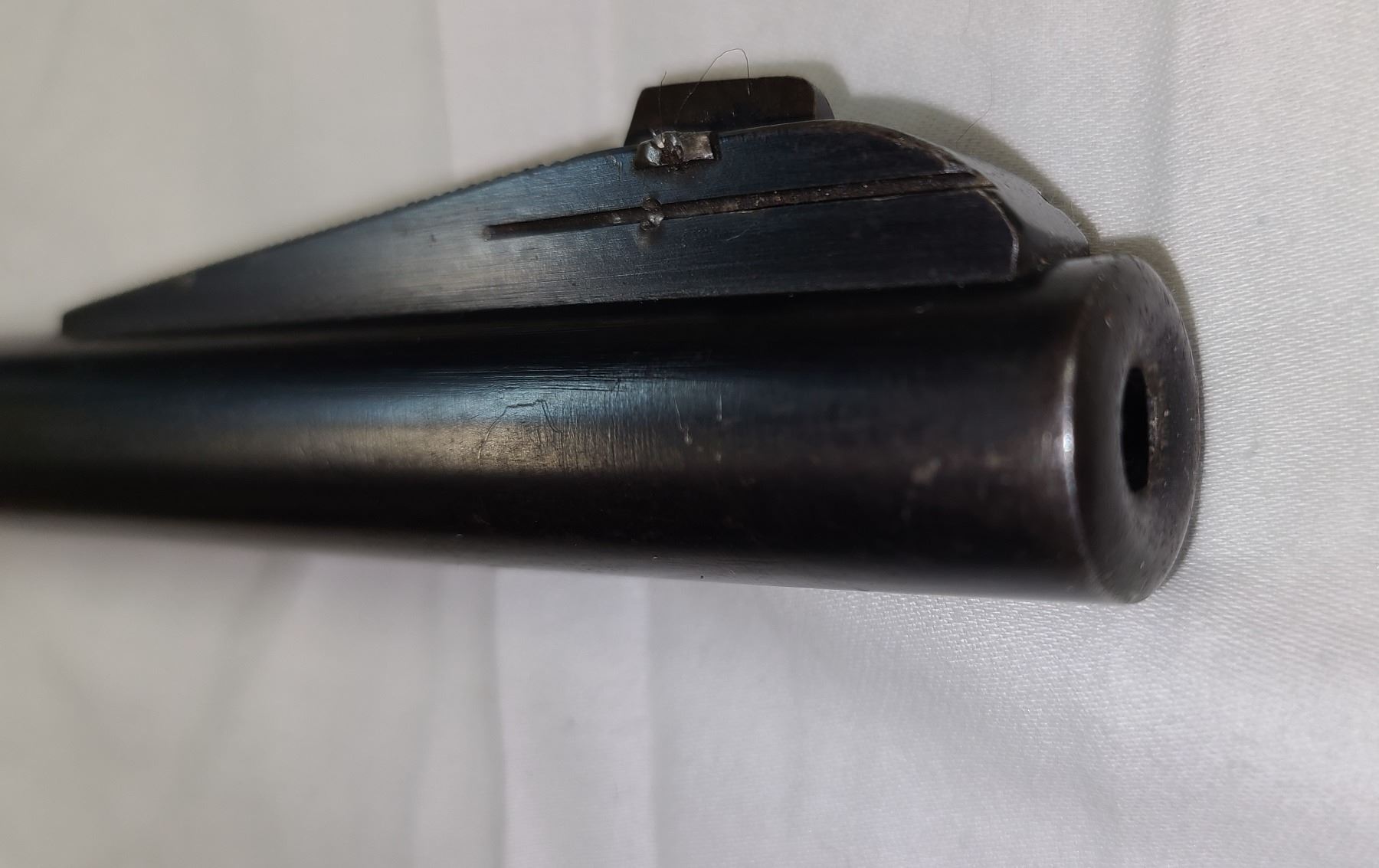 Sights: Ramped blade front. Numbered sliding adjustable notch middle.