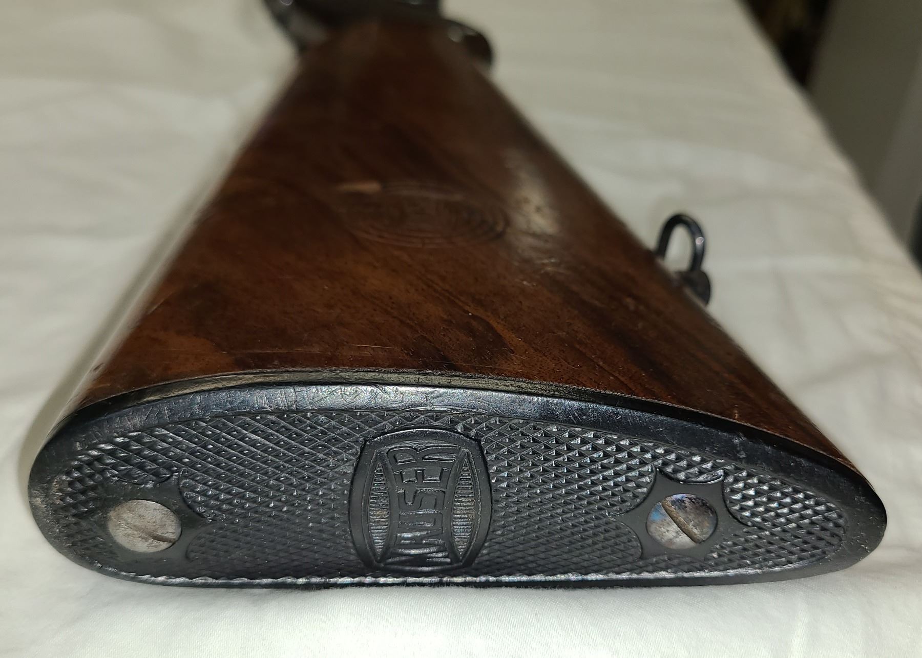 The hard black Mauser stamped butt plate.