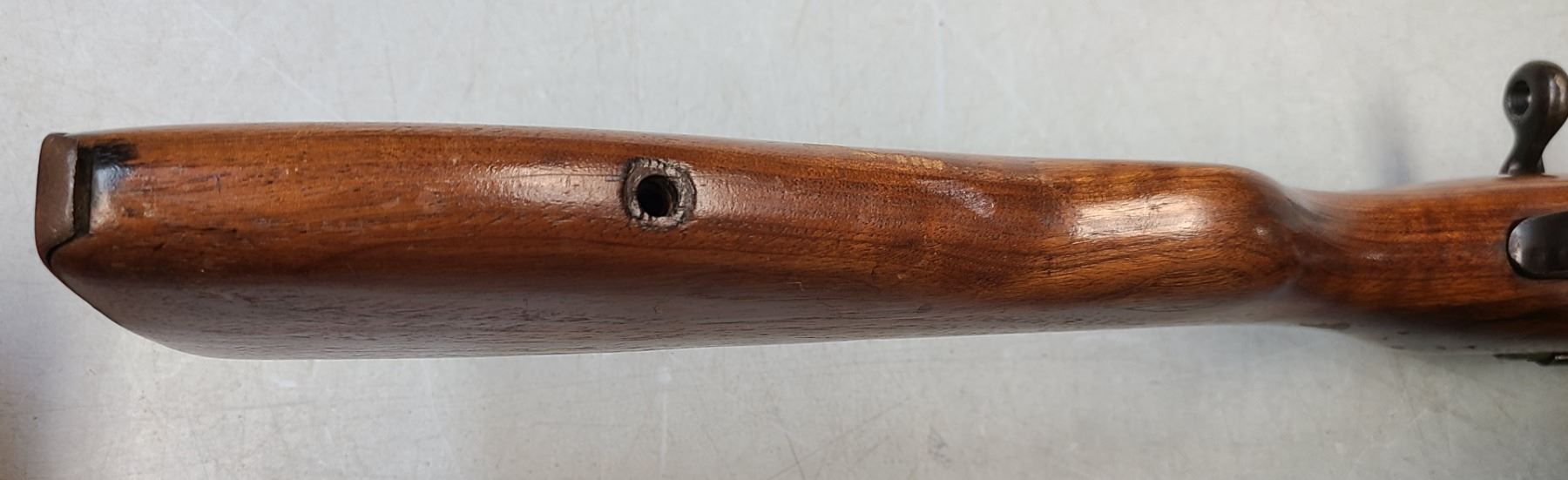 Stock has been reworked into sporting style. Wood is in good condition with no cracks.