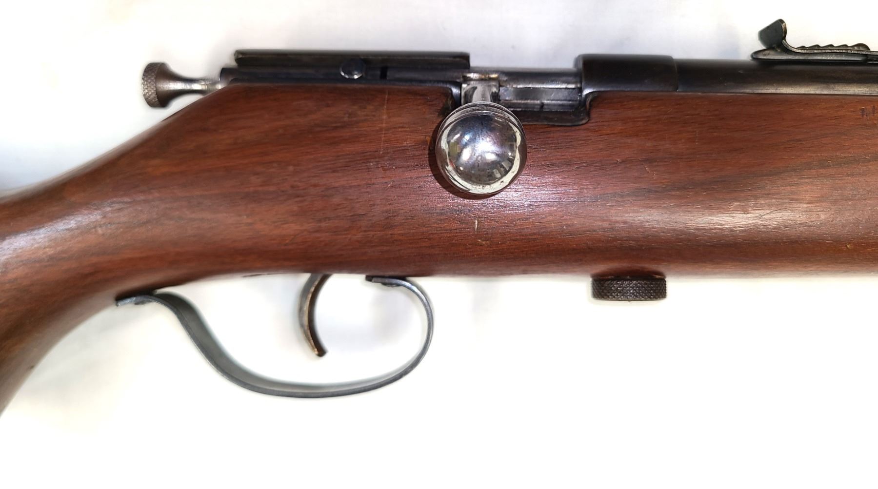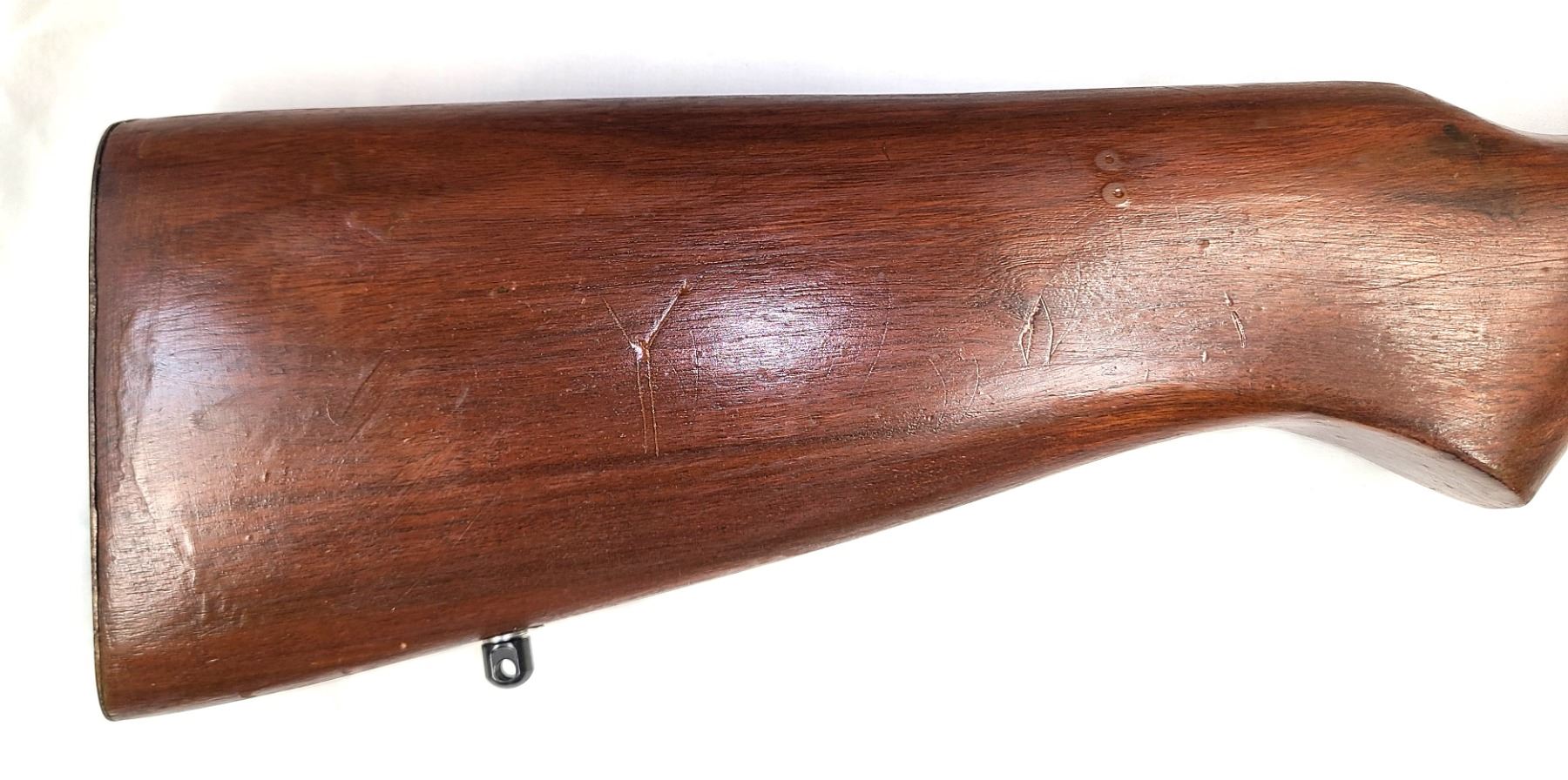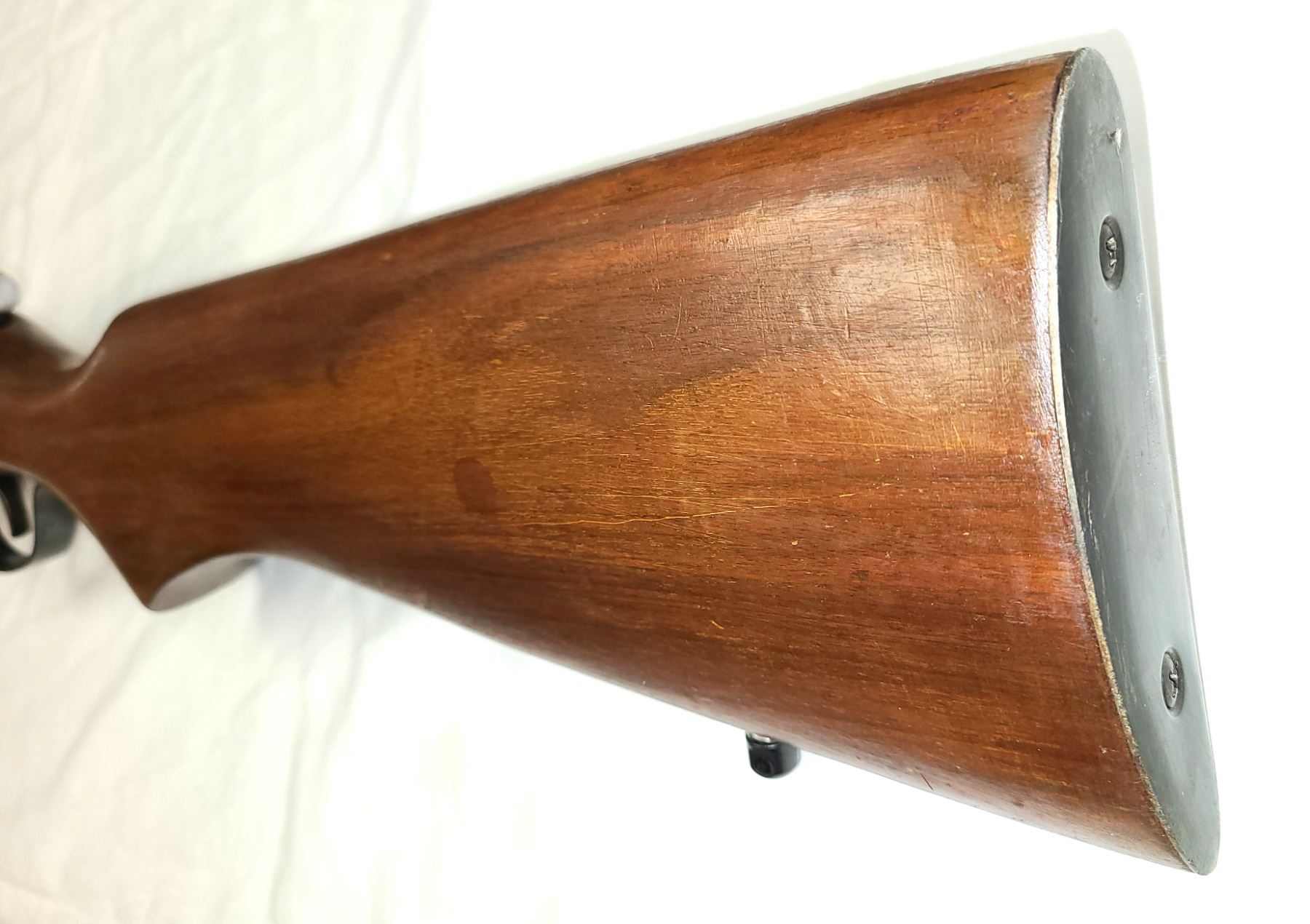 Wood stock is refinishd and shows minimal dents and scratches.