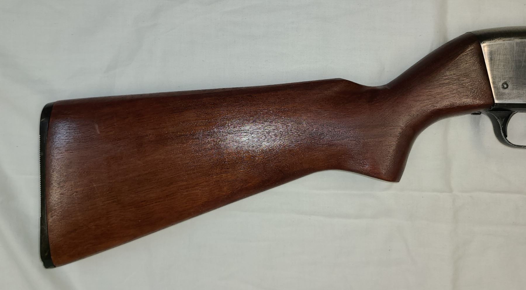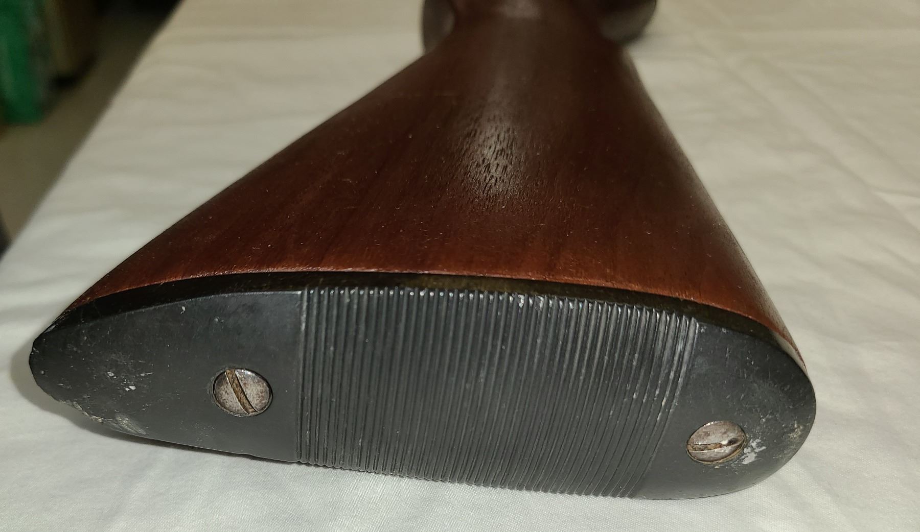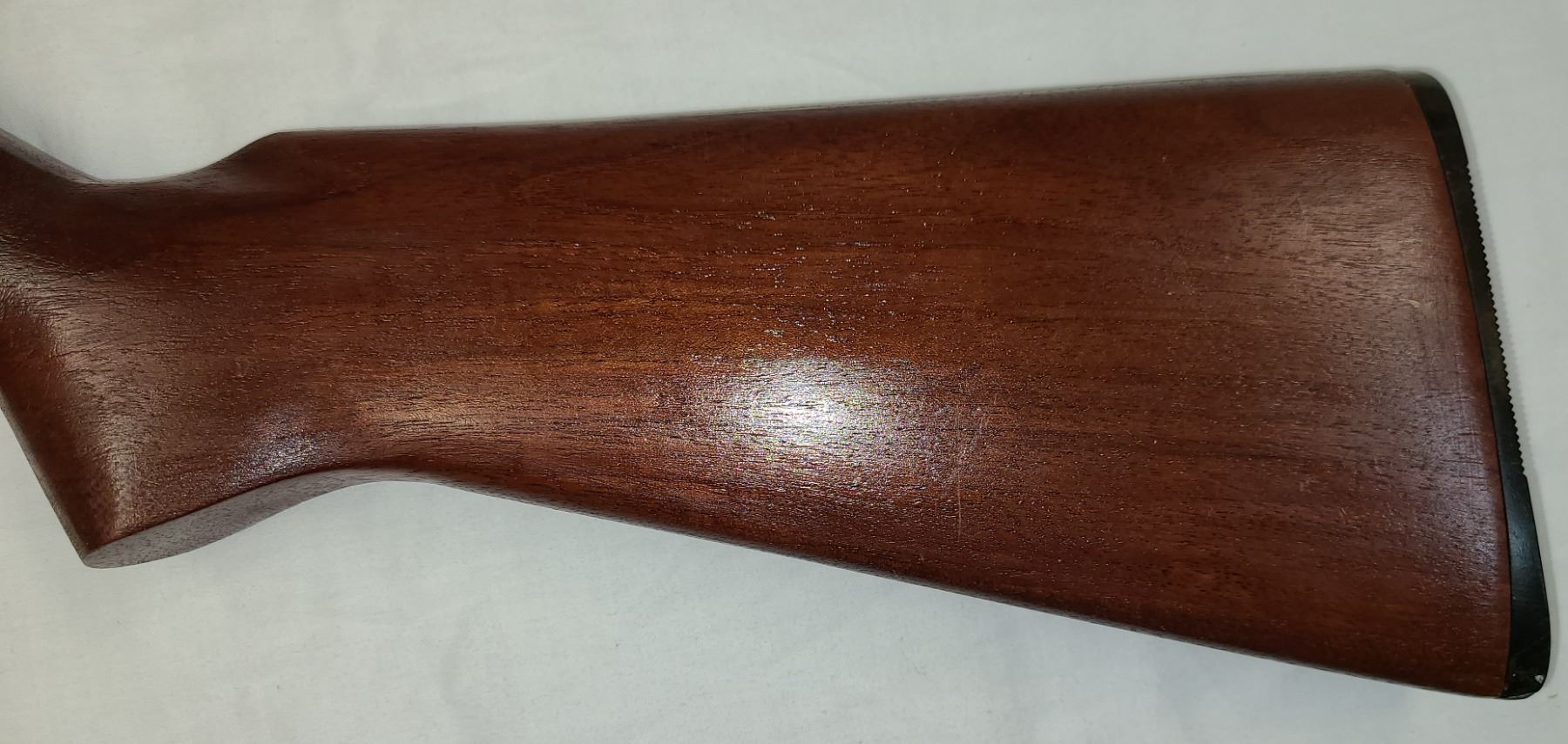 Wood is good with no cracks and has black plastic butt pad.