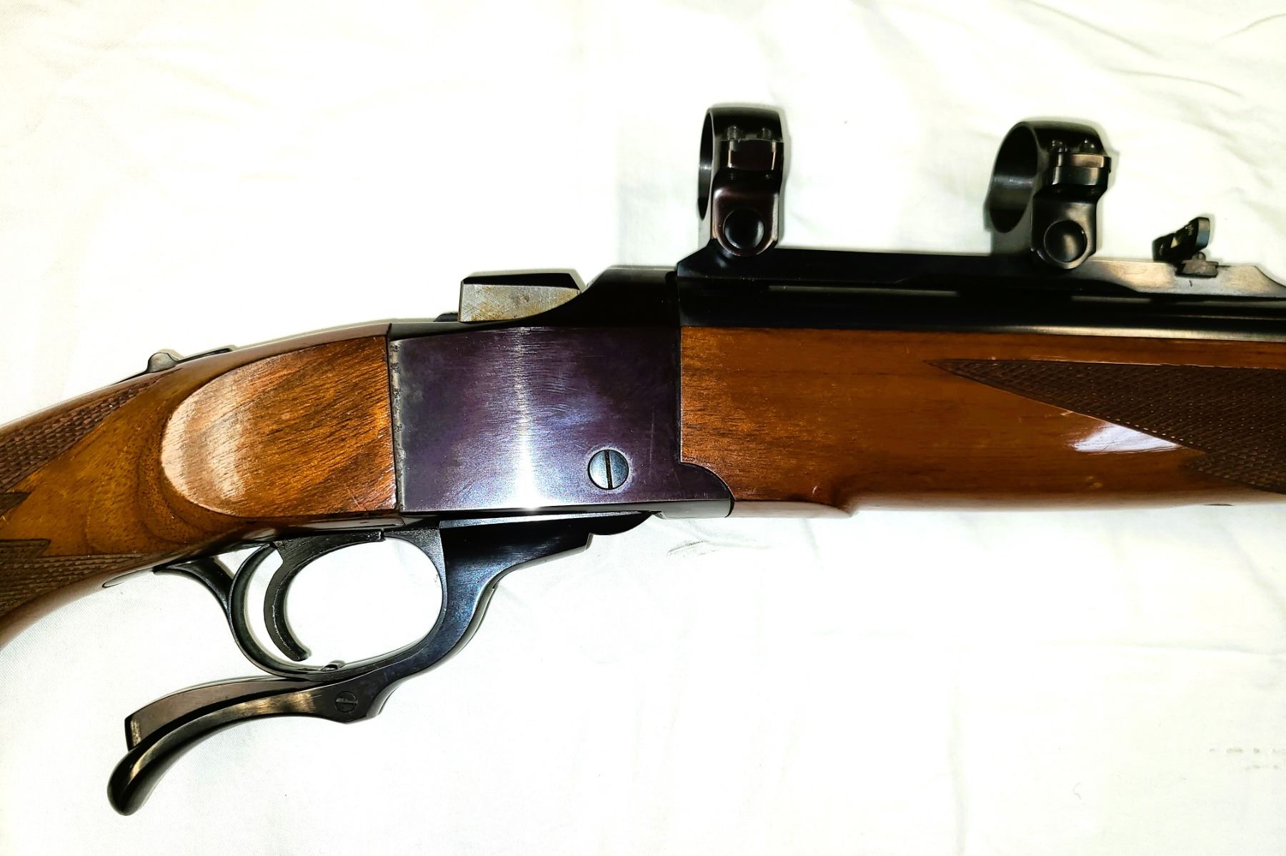 Lot 90 Ruger No 1 Rifle 450 Win Mag Falling Block c/w Base & Rings