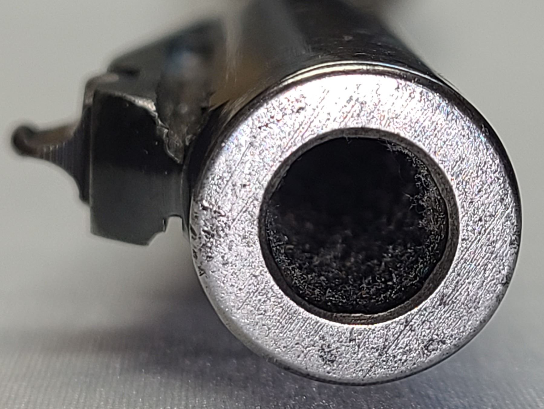 The entire guns metal surfaces retain 10% original factory blue with a shiny patina all
