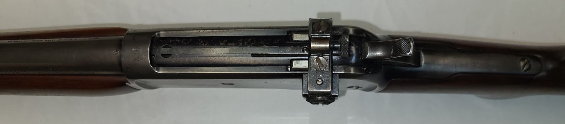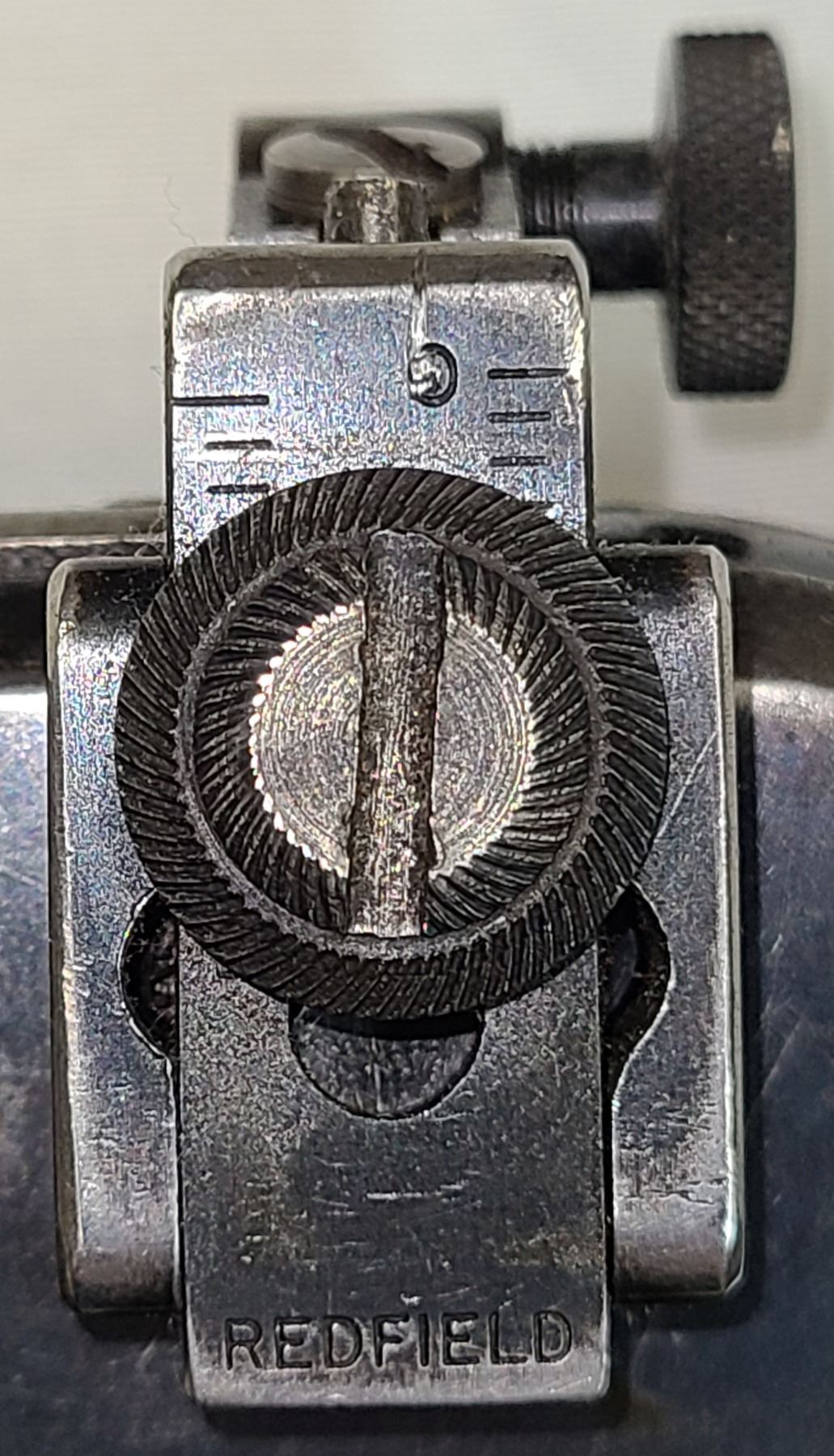 Has a nice Redfiled Peep sight mounted - The original rear sight has a dovetail blank inserted.