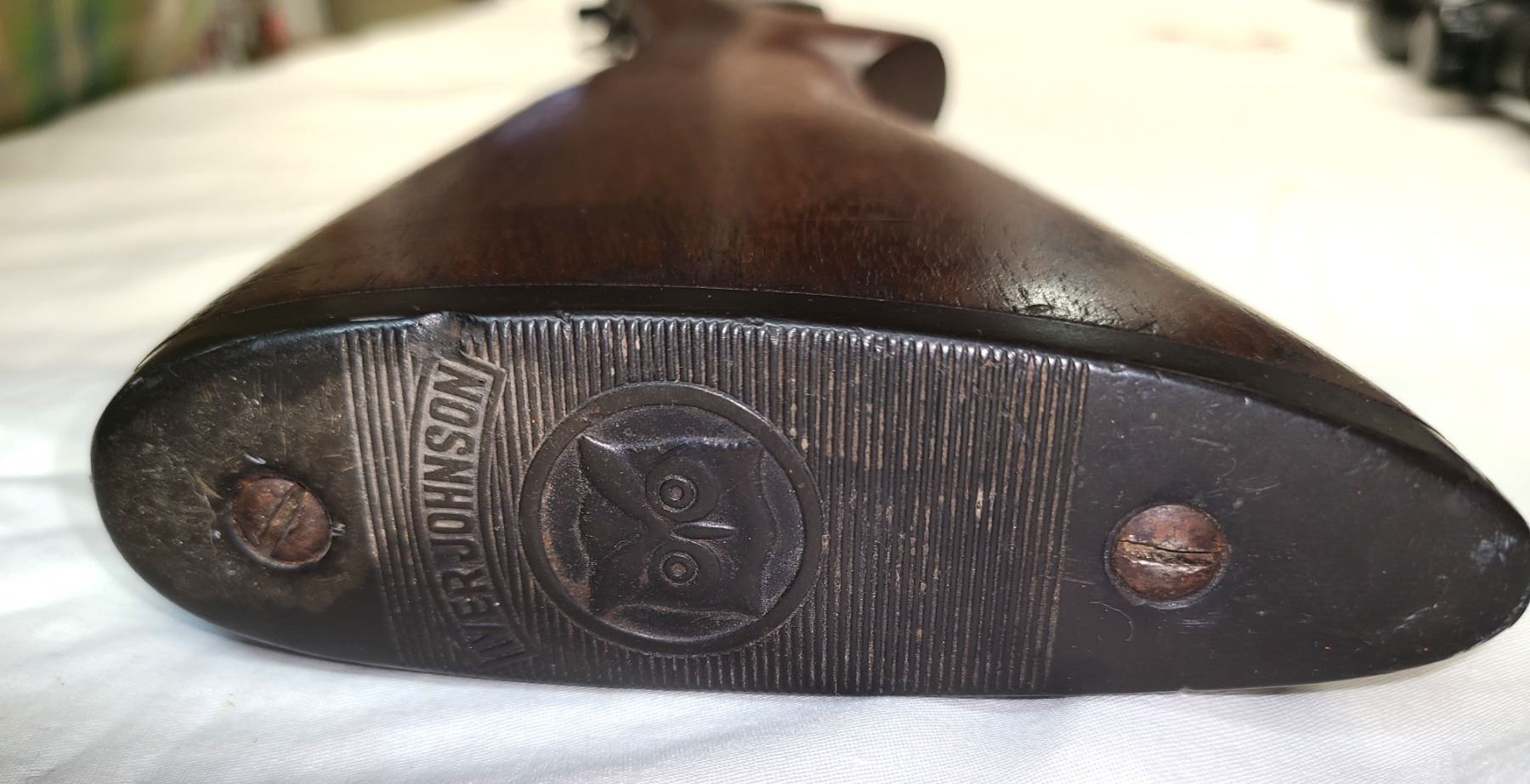 Original butt plate has nice Owl emblem of Iver Johnson.