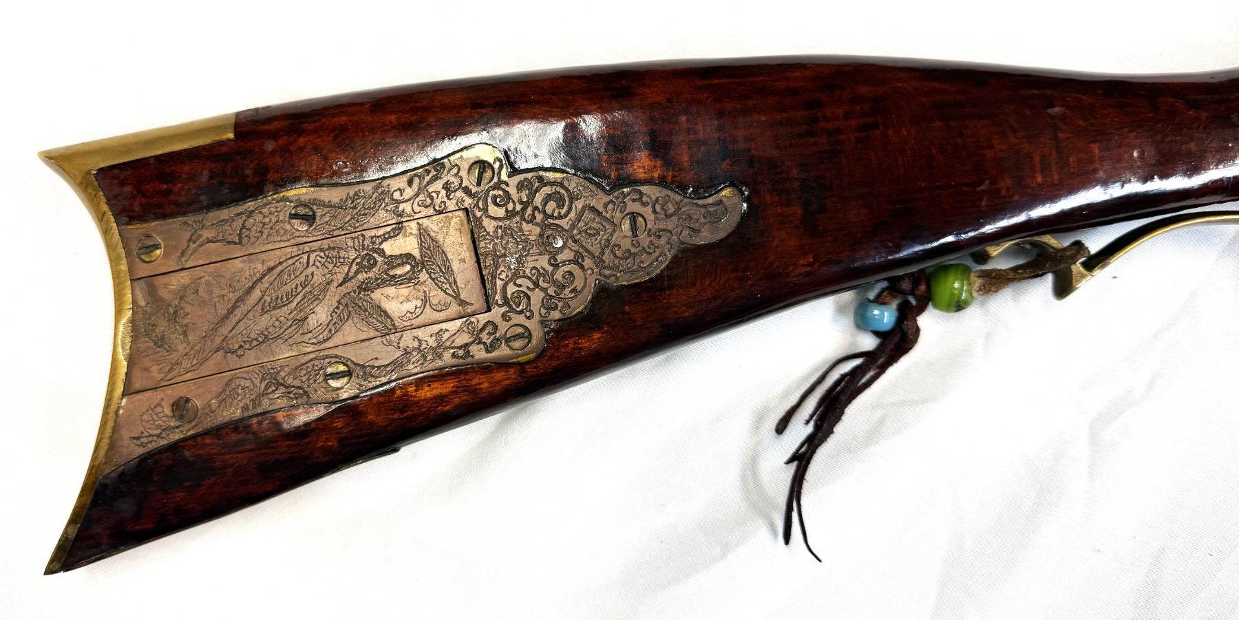 Here we have an unknown maker and unknown caliber long Kentucky style rifle.