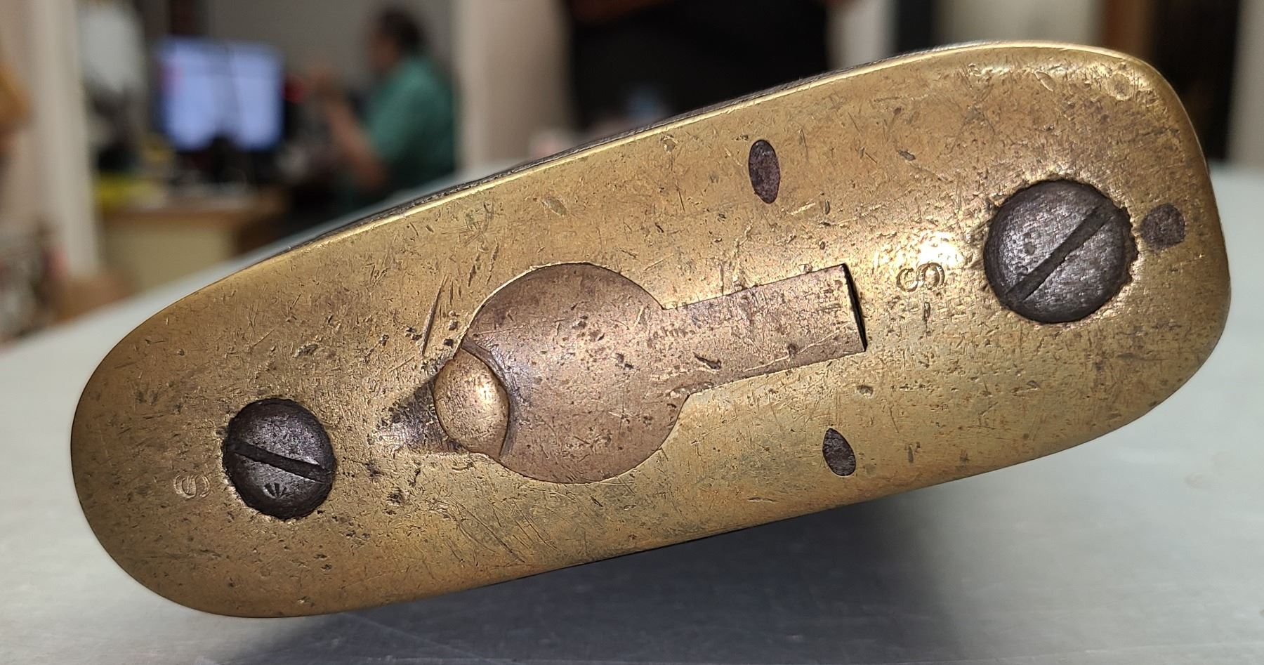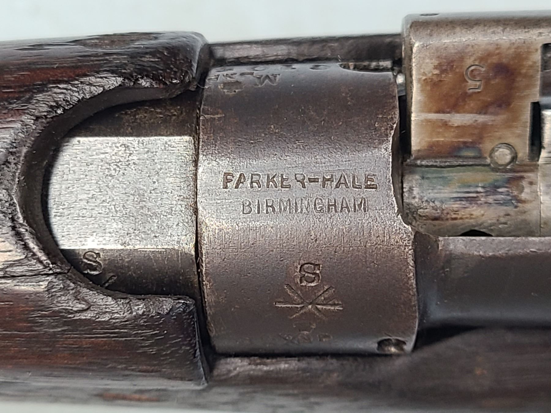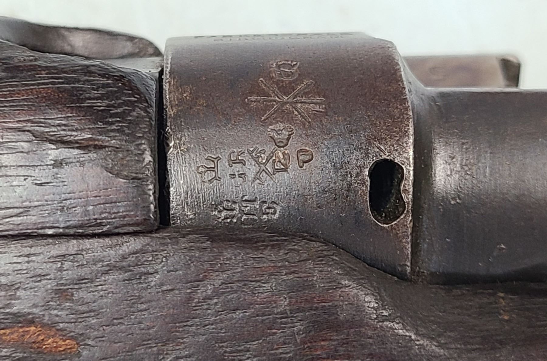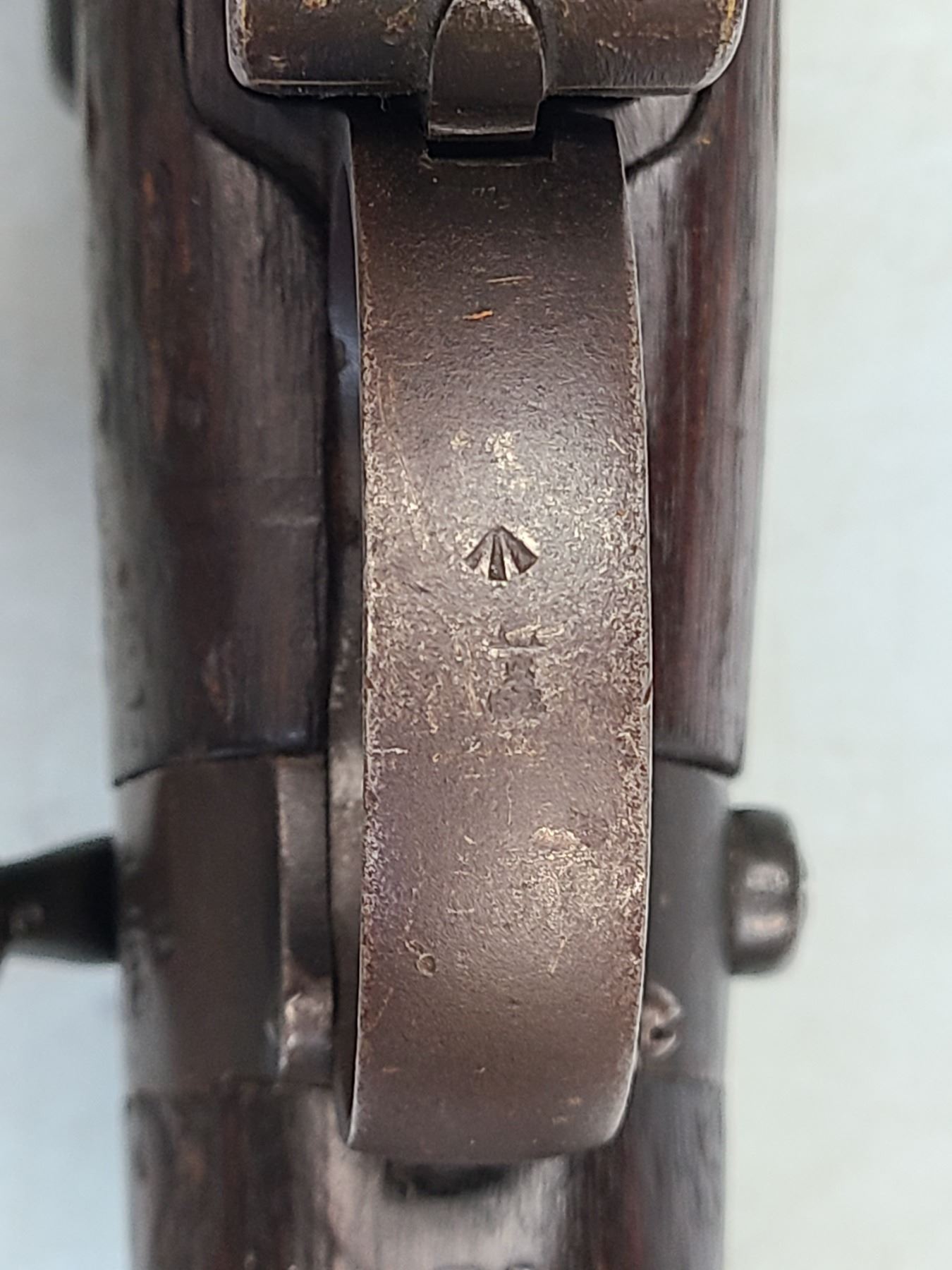 Original rear sight is removed and a rudimentary peep style sight has been installed.