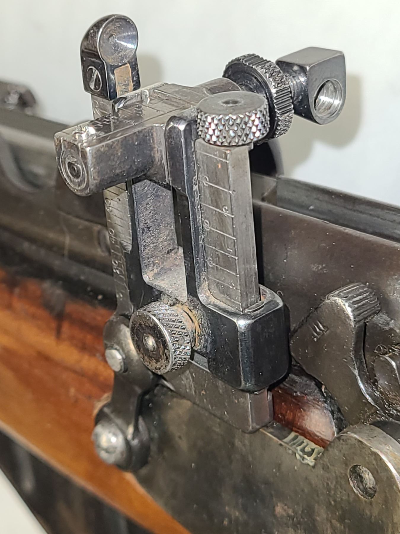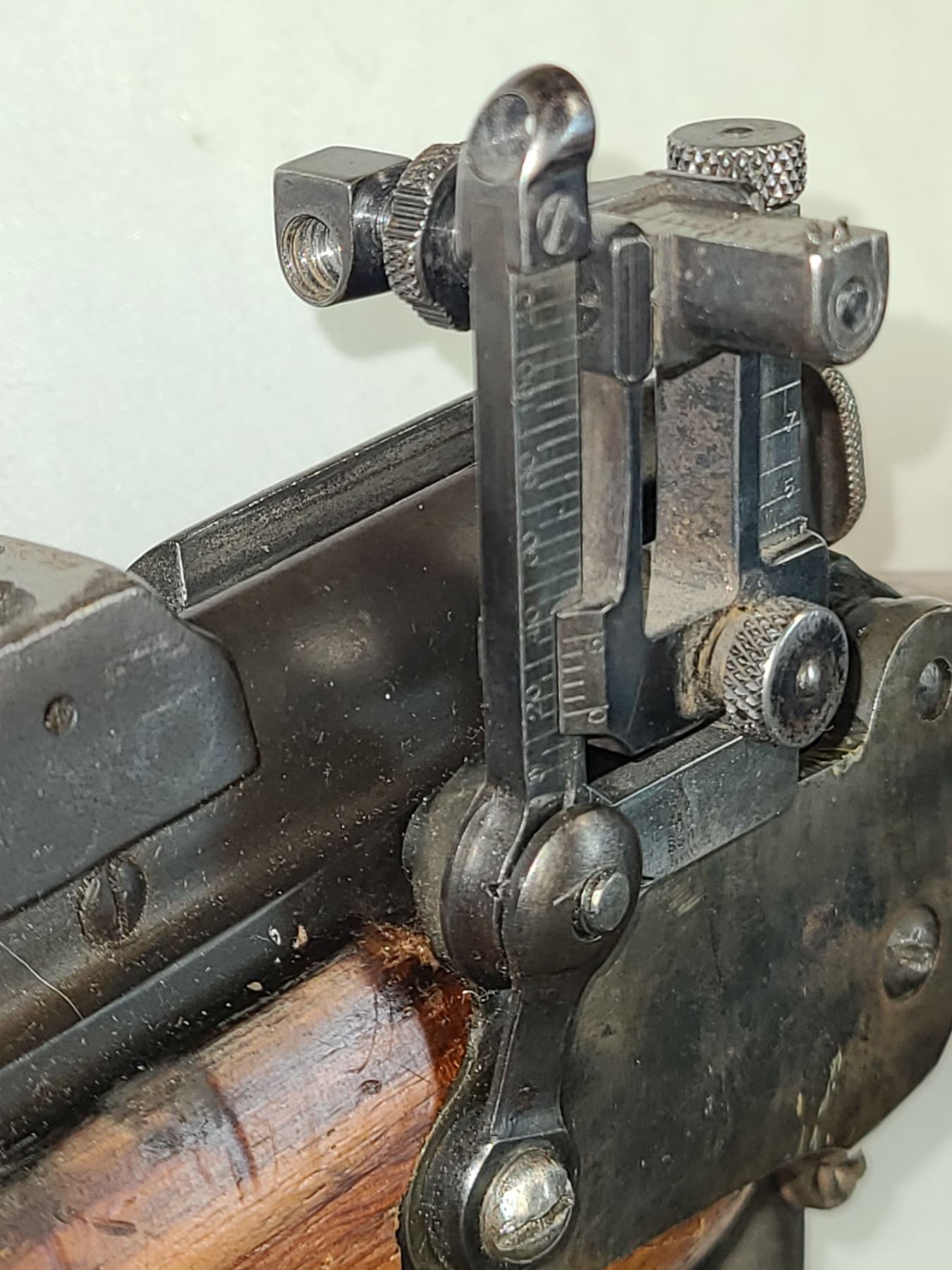 This fully adjustable sight is side mounted to the gun.