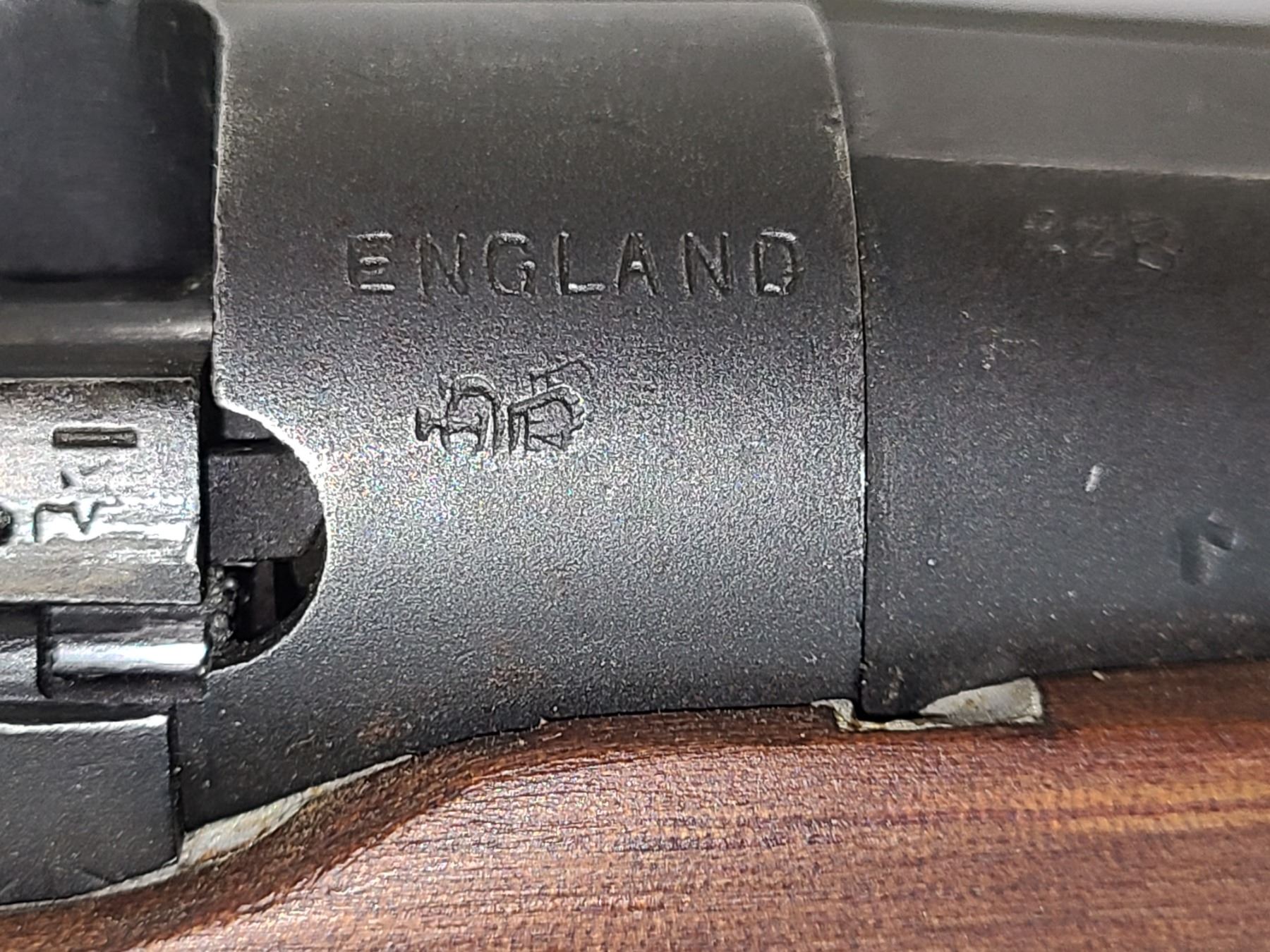 stock band. It also may be a BSA, perhaps a Shirley made rifle. The B is similar.