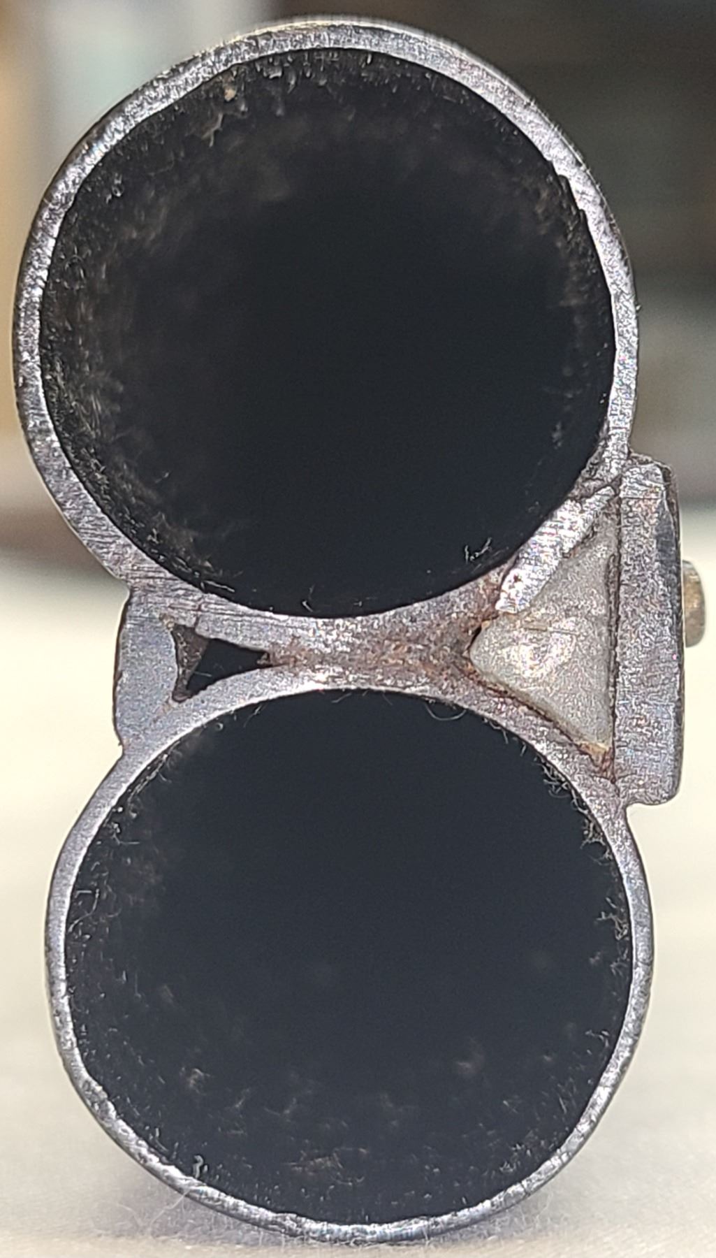 MATERIAL/FINISH COMPOSITION: Steel barrels, faded blue/brown metal.