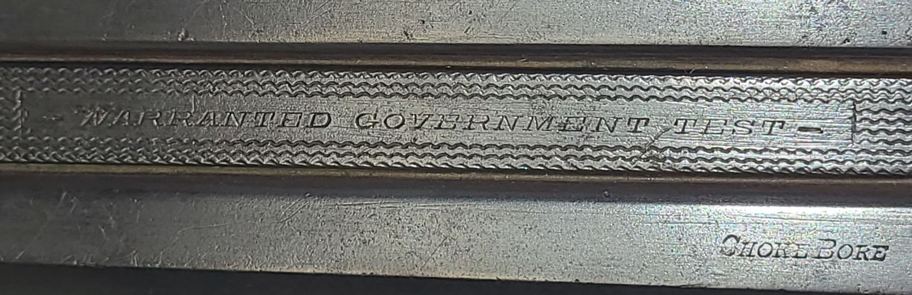 lock plates and on the hatched rib it states Warrented Government Test