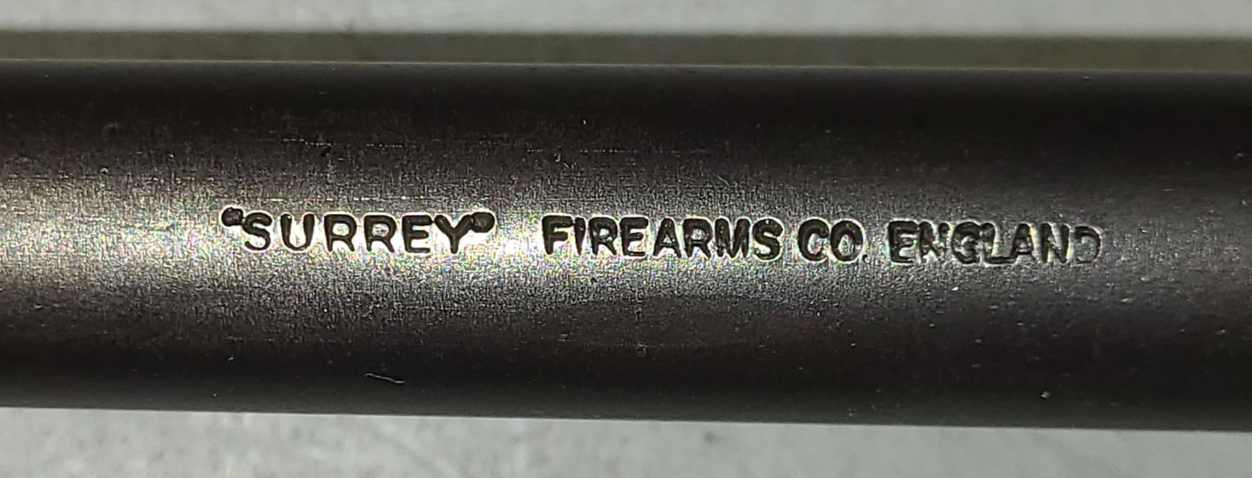 Surrey stamped on top of the barrel is an indication that this rifle, rather than