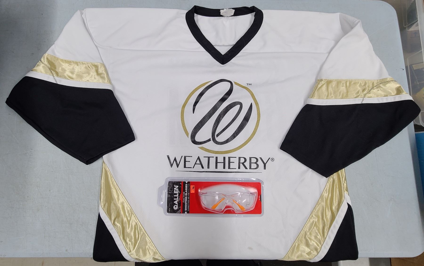 Lot 447 Weatherby Hockey Jersey XXL Size + Safety Glasses