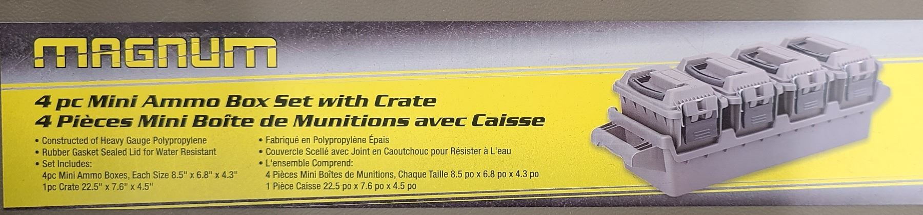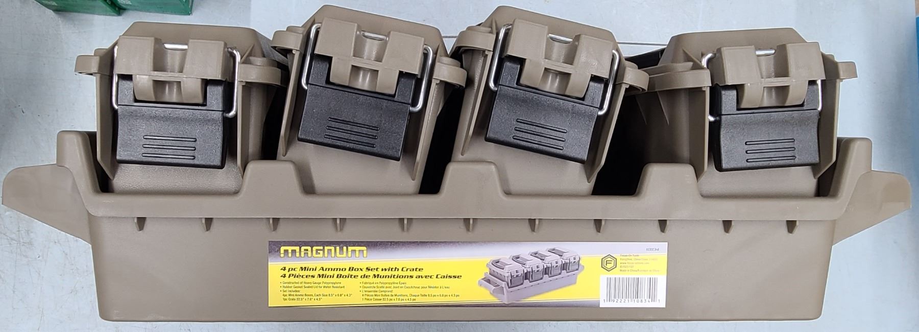 4 Ammo Boxes in Crate - NEW - 8.5 x 6.8 x 4.3 Inches each box