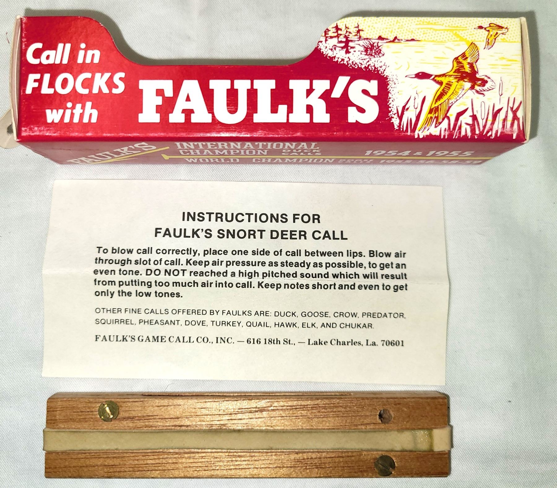 Lot 723 Faulks Deer Call Snort DS-6 in Original Box