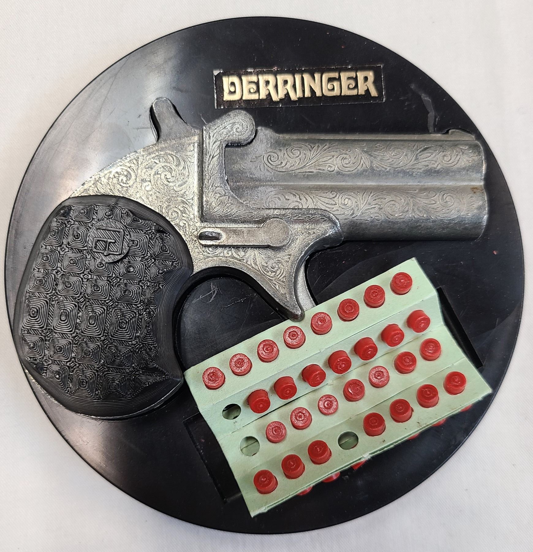 Derringer Cap Gun - Metal Construction c/w Caps & Case - Made in Italy