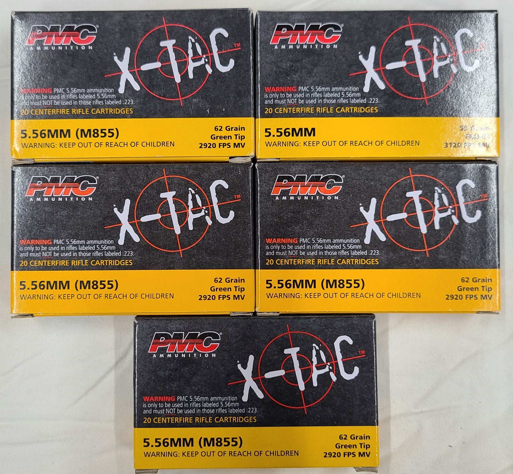 Lot 908 556 / 223 PMC X-Tac 62 gr Green Tip Ammo - 100 rds