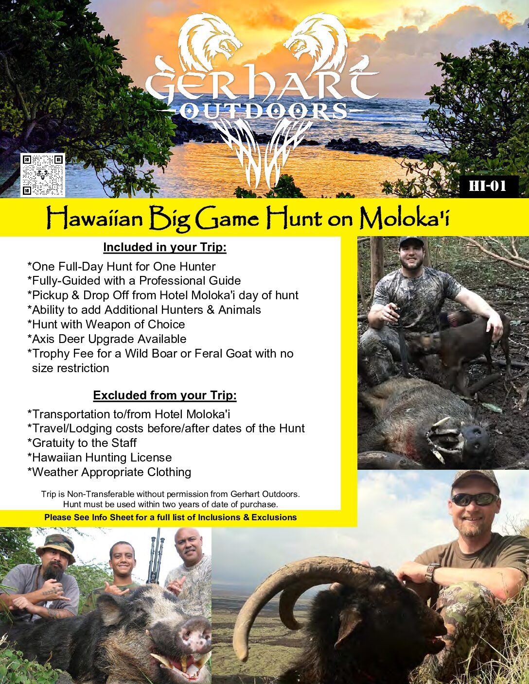 * Pickup and drop off from Hotel Moloka'i day of hunt