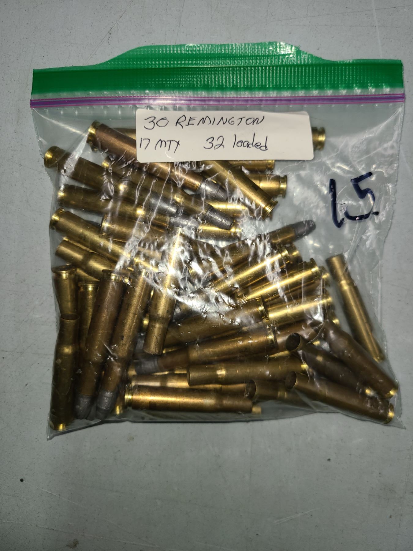 Lot 1066 30 Remington Reload - 32 Rds + 17 Brass