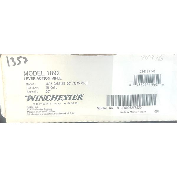WINCHESTER MOD 1892, CAL. 45 LONG COLT, LEVER ACTION RIFLE, 20” BARREL