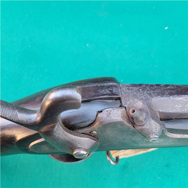 The wood has had some cleaning and there is some pitting around the nipple as one would expect from that period. Otherwise, in good battle field used condition. Lock works well. Has period initials of soldier. Back sight might be a replacement.