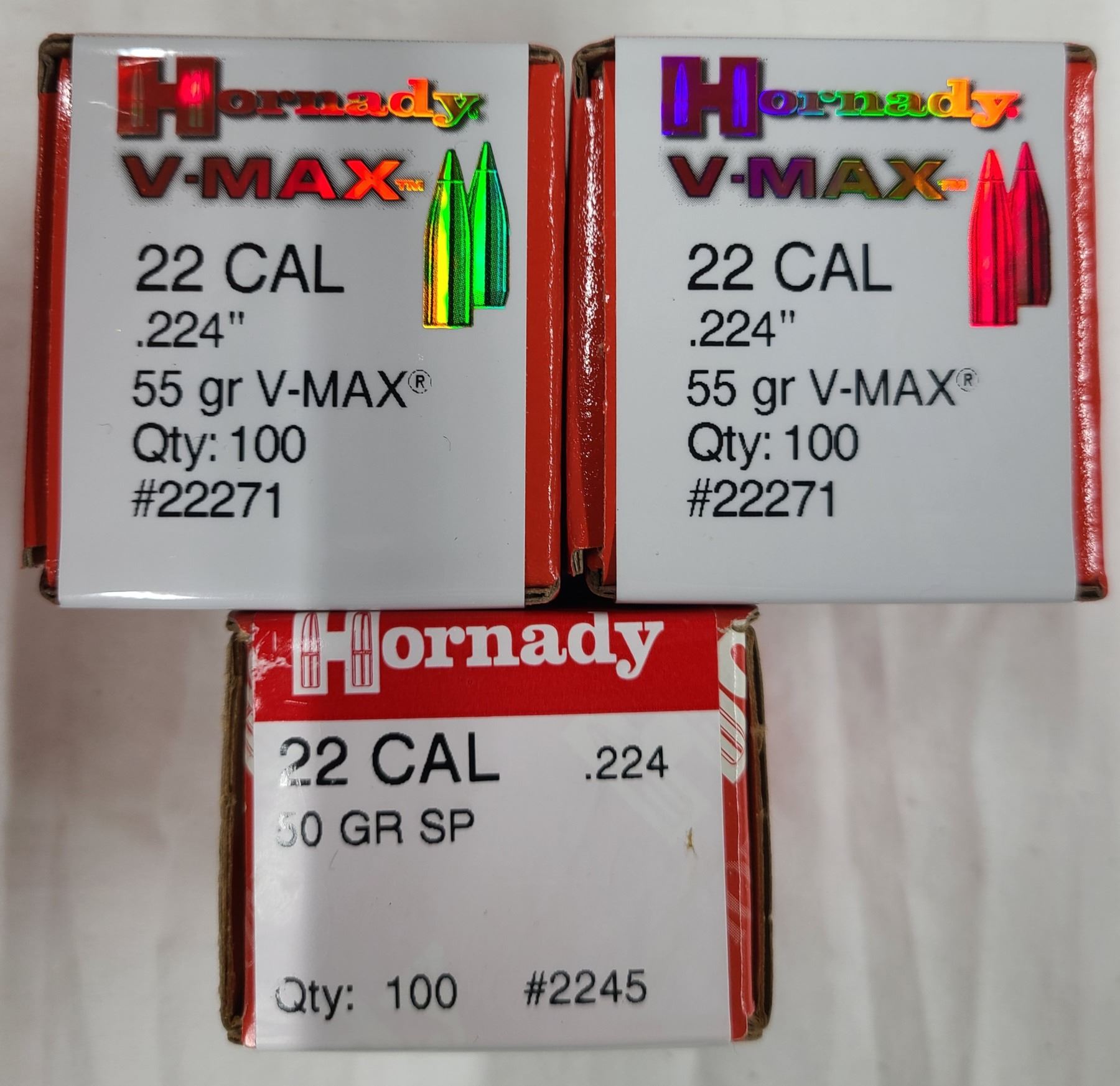 22 cal Hornady V-Max 55 gr - 200 rds + Soft Point 50 gr - 100 rds