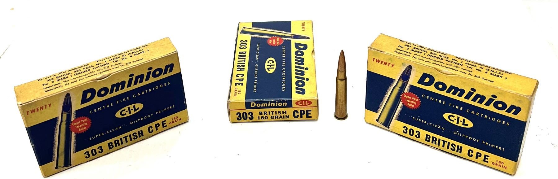 Lot 4050 303 BRITISH - VINTAGE DOMINION (CIL) AMMO - 3 BOXES OF 20 RDS