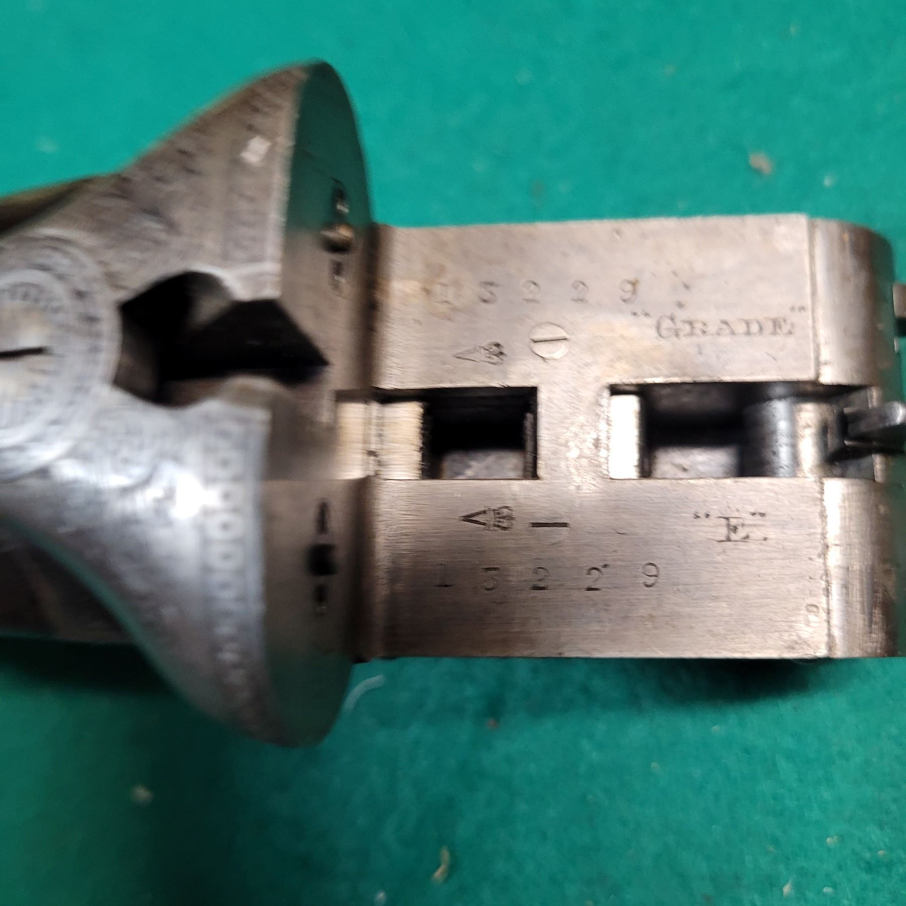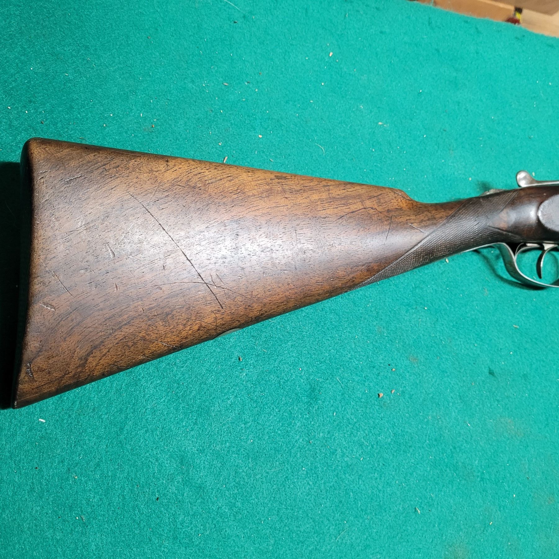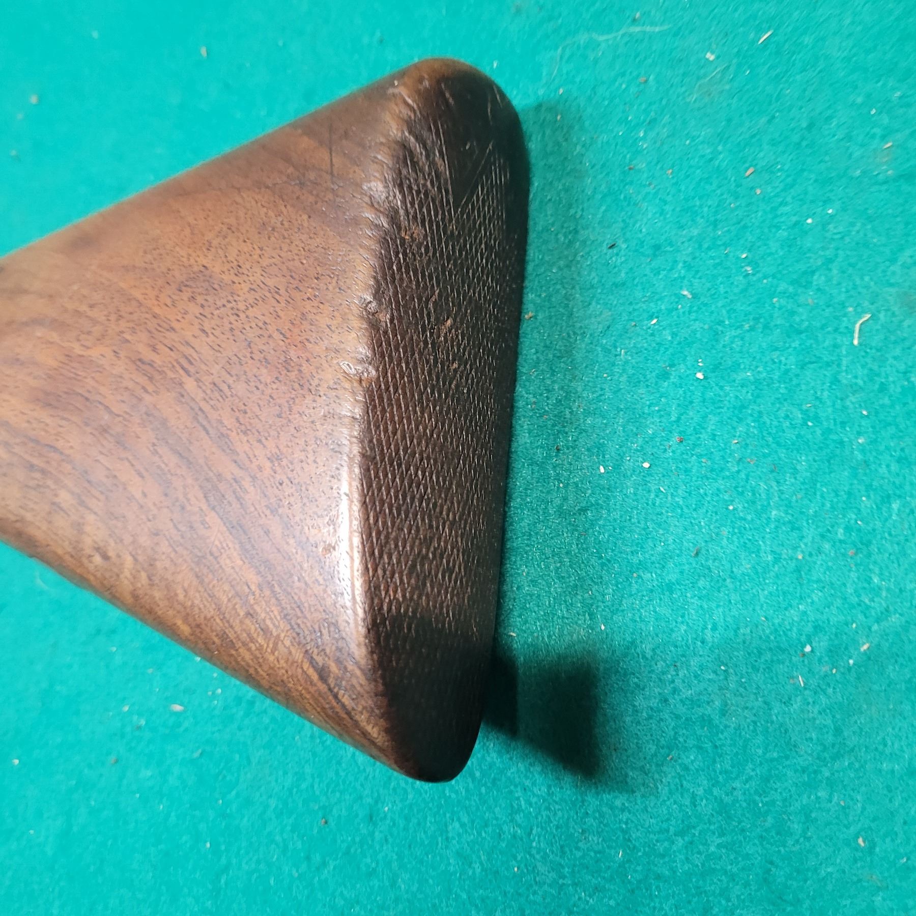 Stock has a stable repair on left side of the wrist. Stock has scratches and dents.