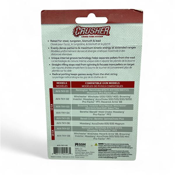 Avian X Crusher Extended Range Turkey Choke Tube for 12 Ga Crio Optima Choke Plus, New