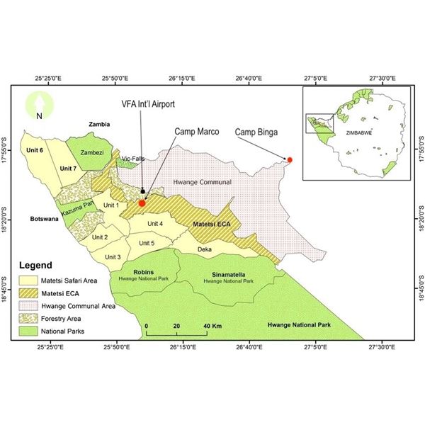 Hunting takes place in Matetsi ECA, a world-renowned hunting safari destination, with 200,000+ acres of unfenced hunting grounds within the KAZA TFCA region. Animals roam free with almost no hunting pressure. At this unique hunting destination, you may hunt over 30 different big game species including elephant, lion, buffalo, leopard, and sable. The area is scouted all year round with a success rate of 100% for several seasons in a row. Hunting at Matetsi is a privilege that ensures safari memories of a lifetime.