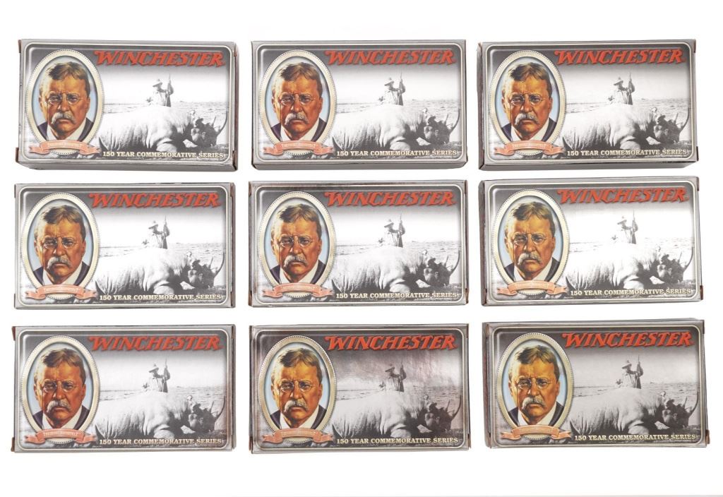 Lot 73A Lot of Nine (9) Boxes of Limited Edition .405 Winchester Teddy Roosevelt 150Year Commemorative