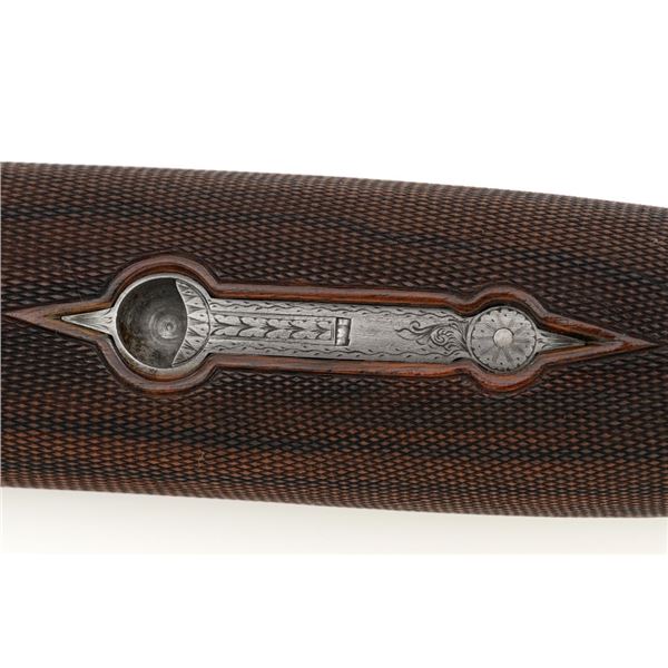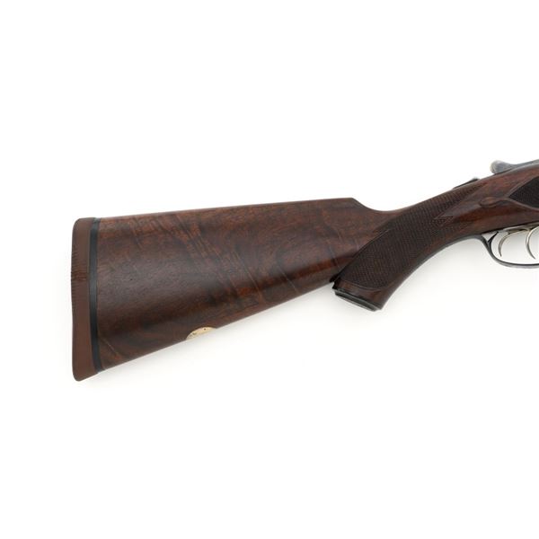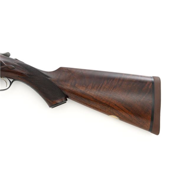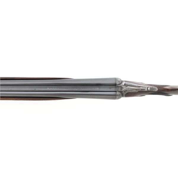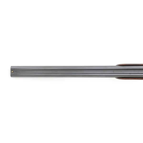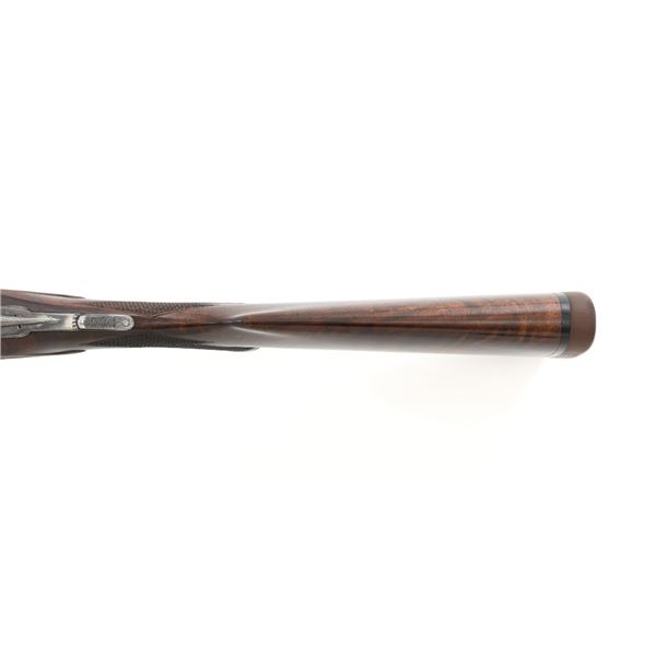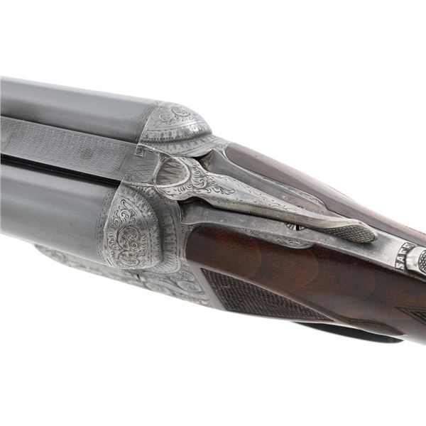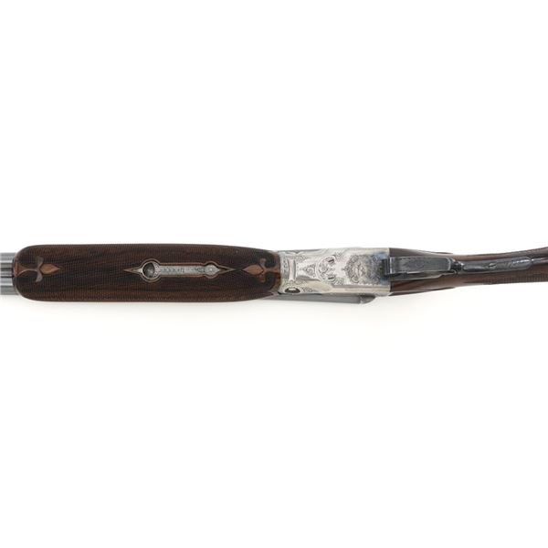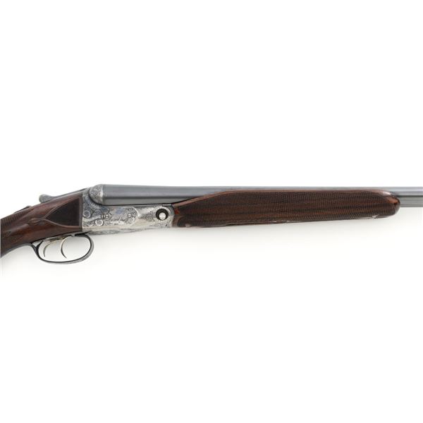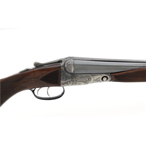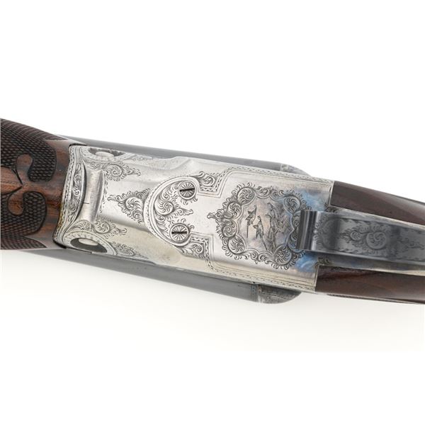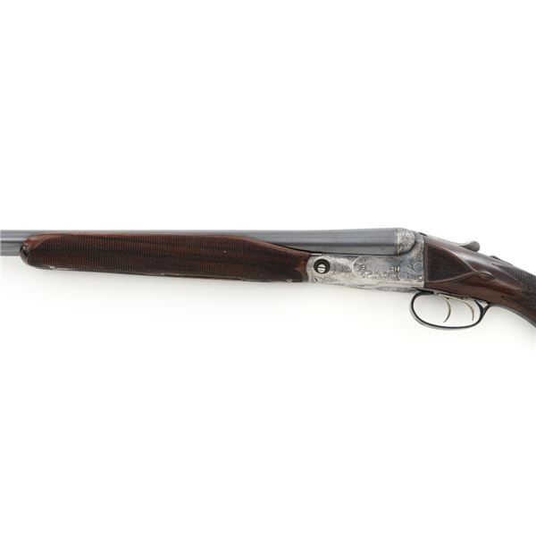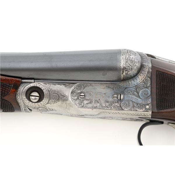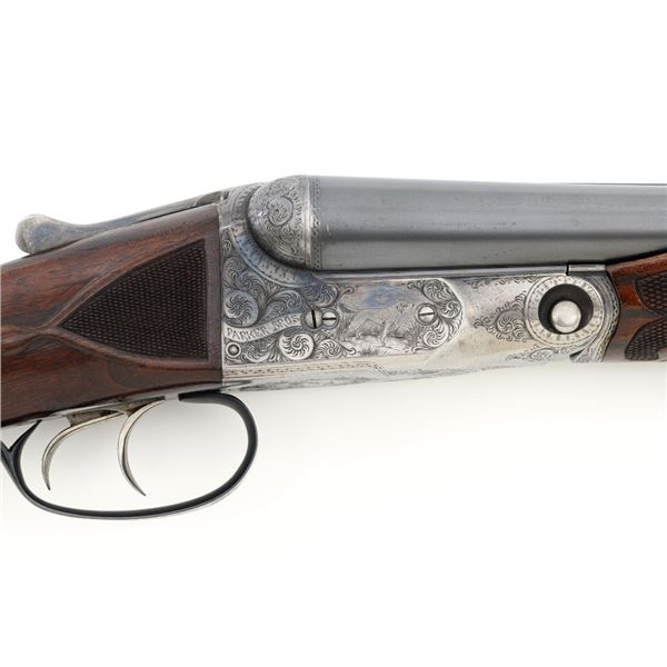 Parker Brothers DH Grade Side-by-Side Hammerless Shotgun, #217298. 12 ga., 28" "Titanic Steel" barrels have target beads, 2-3/4" chambers, concave matted rib, and are choked IC/MOD. Boxlock action utilizes a single underlug and dolls head rib extension for lockup and features double triggers, automatic safety, and simple extractors. Case hardened size 1-1/2 receiver is ornately engraved with a pointer on the left hand side, setter on the right, flushing pheasants on the bottom, and elaborate rose and scroll engraving surrounding the artwork. Beavertail forend and pistol grip buttstock are oil-finished "C" grade walnut, with extensive 21 and 26 LPI checkering, Parker Bros. gutta-percha grip cap, and brown "No-Shoc" recoil pad installed. Stock dimensions are 14-1/8" x 1-3/4" x 2-5/8". Gun was made in 1926 and looks to be an original, well-kept piece. Condition is very good, with 40%-50% case colors on the receiver, machine-turned water table, few handling marks to the wood, expected wear to the action, which closes tight and functions correctly; bores are mirror bright. Overall, there may have been some small repairs over the years, but the basic shotgun has been kept in its fundamental condition and should be ready for light field use today. Est.: $1,800-$2,400. (C&R)