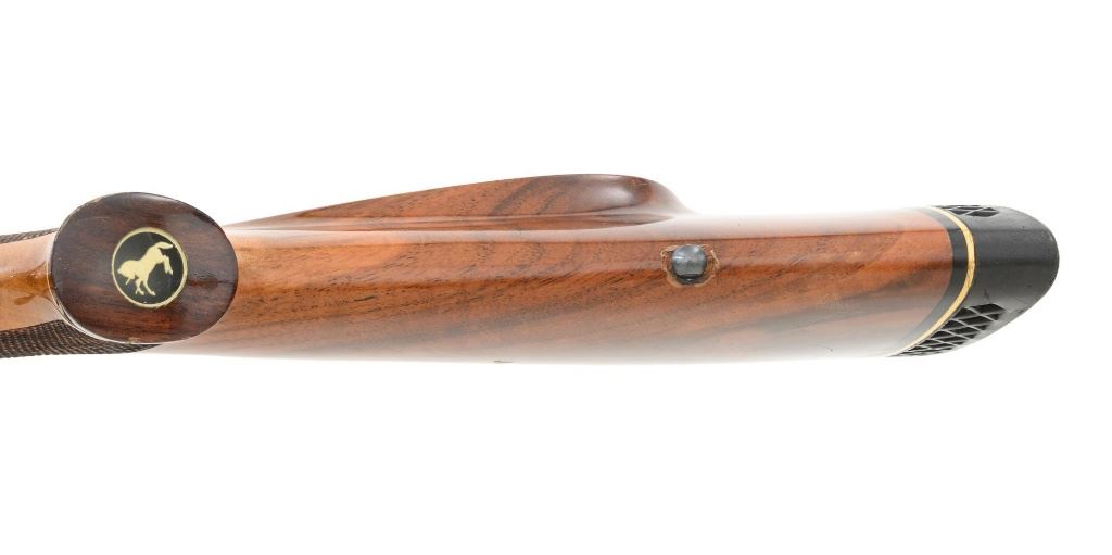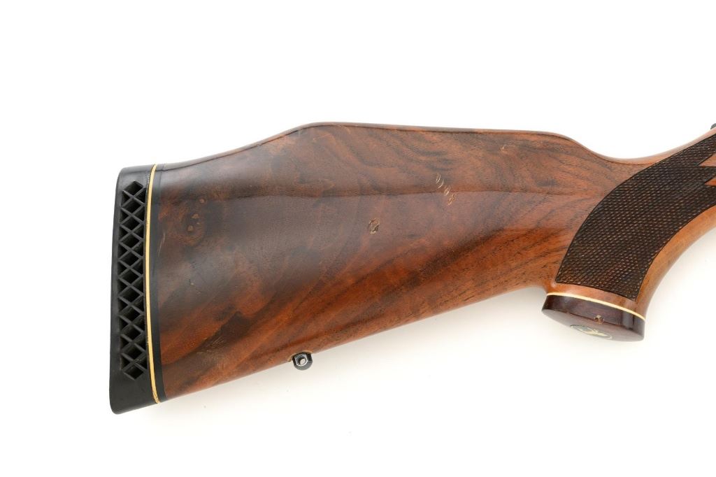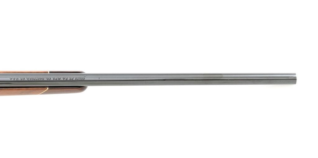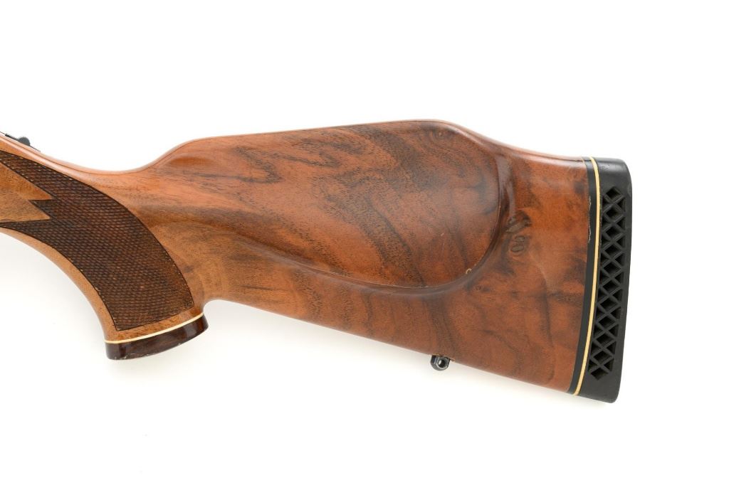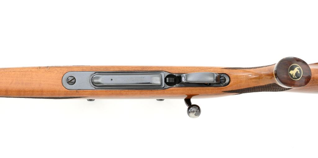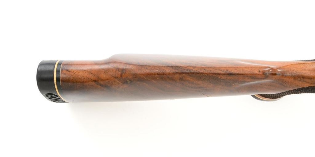 West German Colt Sauer Bolt Action Rifle, #CR24789, 7mm Rem. Mag. cal., 24" barrel, blue finish. Finely checkered deluxe walnut one-piece Monte Carlo stock with rosewood forend tip and grip cap with Rampant Colt inlay, and sling swivel studs. Manufactured without sights. Receiver is topped with Redfield two-piece bases and rings. Factory markings are clear, with "Made in W. Germany / by J.P. Sauer & Sohn" on the right side of the barrel. Bolt is stamped with the matching serial number. Mfgd 1980. Includes two (2) Colt 4-round magazines, cardboard shipping and factory box with Styrofoam interior, instruction manual, and five (5) 20-round boxes of Federal Premium ammunition with 160 gr. Nosler Partition bullets. Rifle is in fine overall condition, retaining approx. 95%-96% factory blue, showing wear at the muzzle, intermittent scratches, and marks along the barrel, consistent with field use. Receiver and bottom metal display light edgewear and some minor scratches. Stock is in near fine condition with scattered mostly moderate indentations and scratches. There are a couple of deeper marks on the right side of the buttstock and left side of the forend. Buttstock ends with a Colt/Sauer ventilated rubber recoil pad, providing a 13.75" LOP. Action operates smoothly. Bore is near excellent with well-defined rifling. Est.: $2,000-$2,500. (Modern)