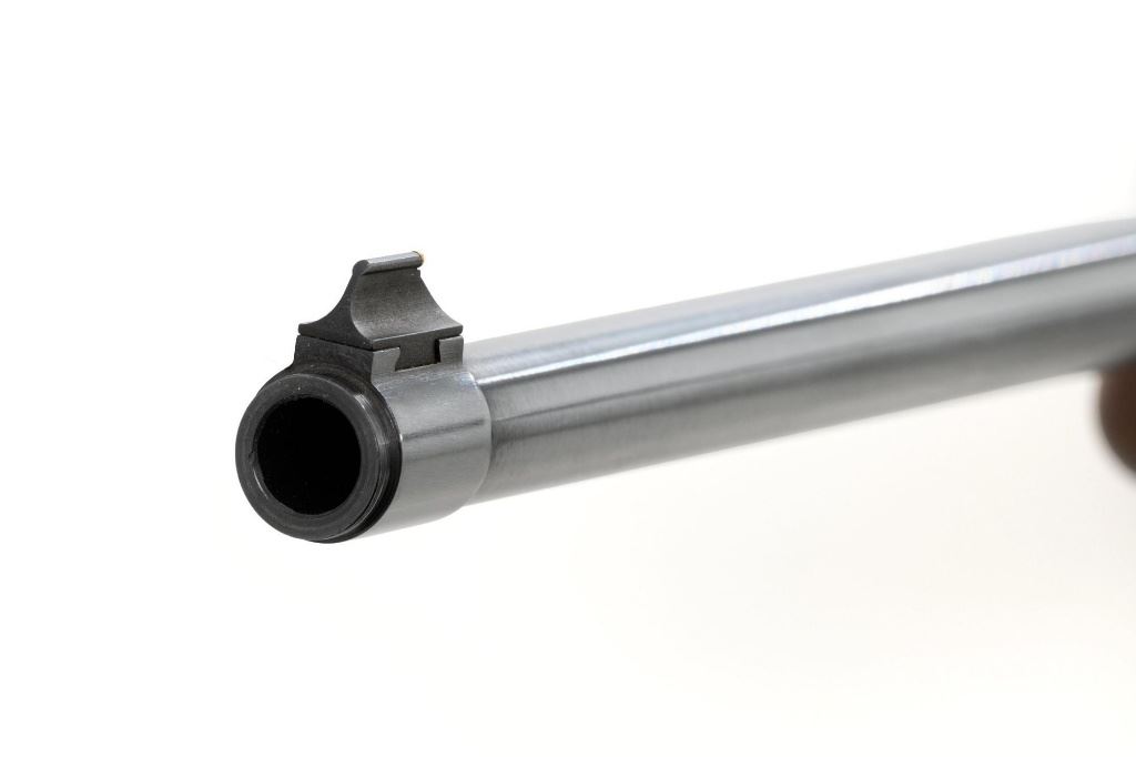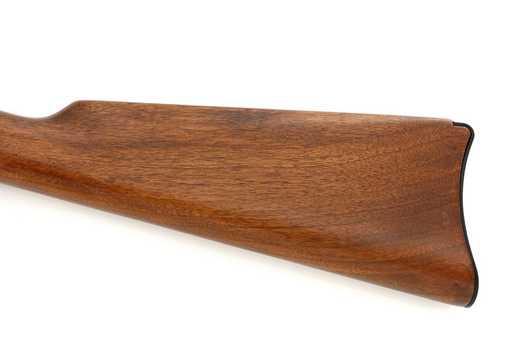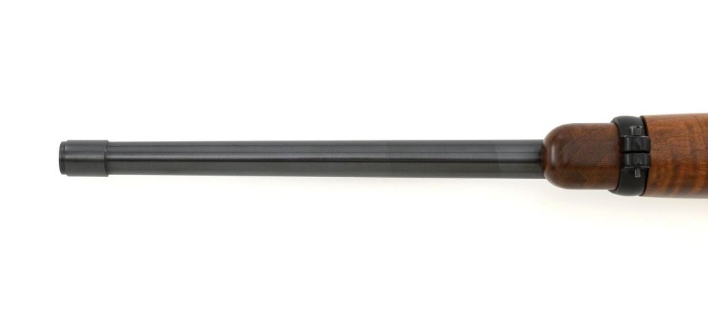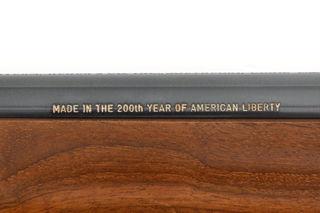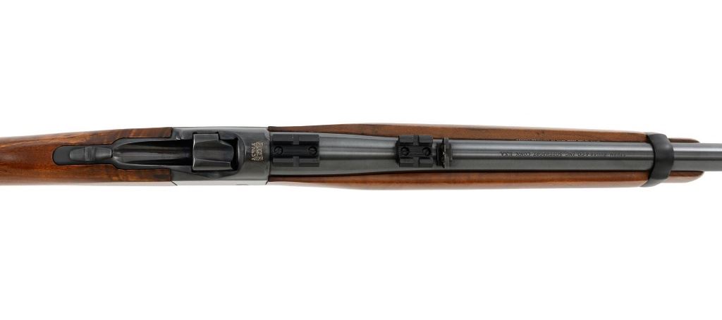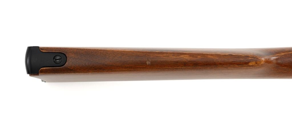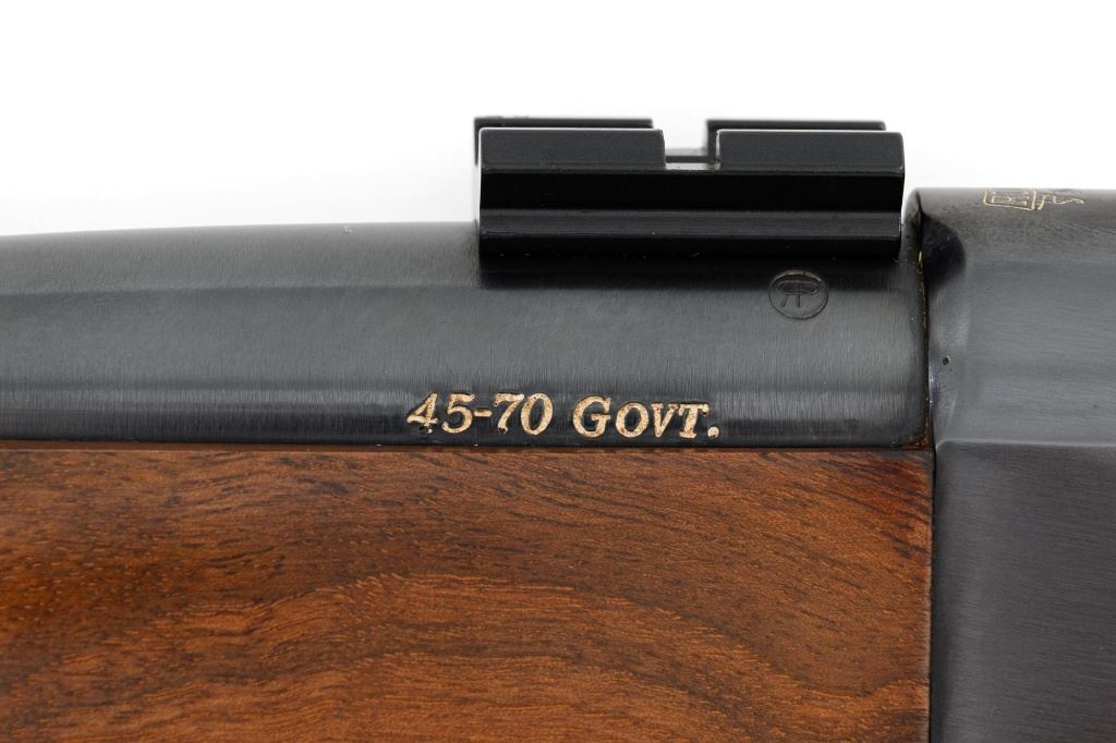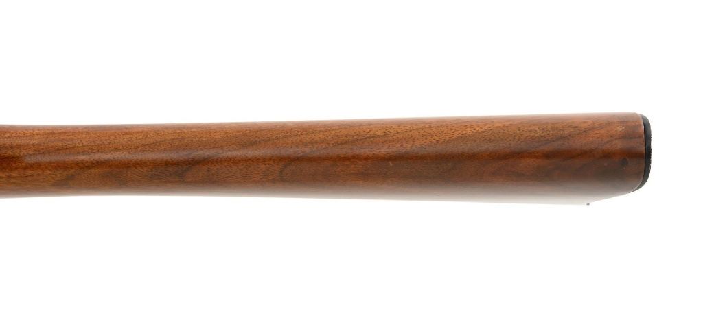 Ruger No.3 Single Shot Carbine, #130-55647, .45-70 cal., 22" barrel, with blue finish. Smooth walnut straight grip stock and forend with barrel band, ending with a smooth black plastic buttplate, providing a 13.5" LOP. Carbine also features a banded brass tipped blade front and standard notched folding rear sight, Weaver two-piece mounts added on the barrel ahead of the receiver, and tang safety. Factory markings are clear, with "MADE IN THE 200TH YEAR OF AMERICAN LIBERTY" on left side of the barrel. Mfgd 1976. Carbine is in excellent overall condition, retaining approx. 99%+ factory finish. Stock is in excellent overall condition, with scattered light indentations, and a slightly deeper ding on top of the comb. Action is crisp and locks up securely. Bore is mirror bright with excellent rifling. Est.: $700-$1,000. (Modern)